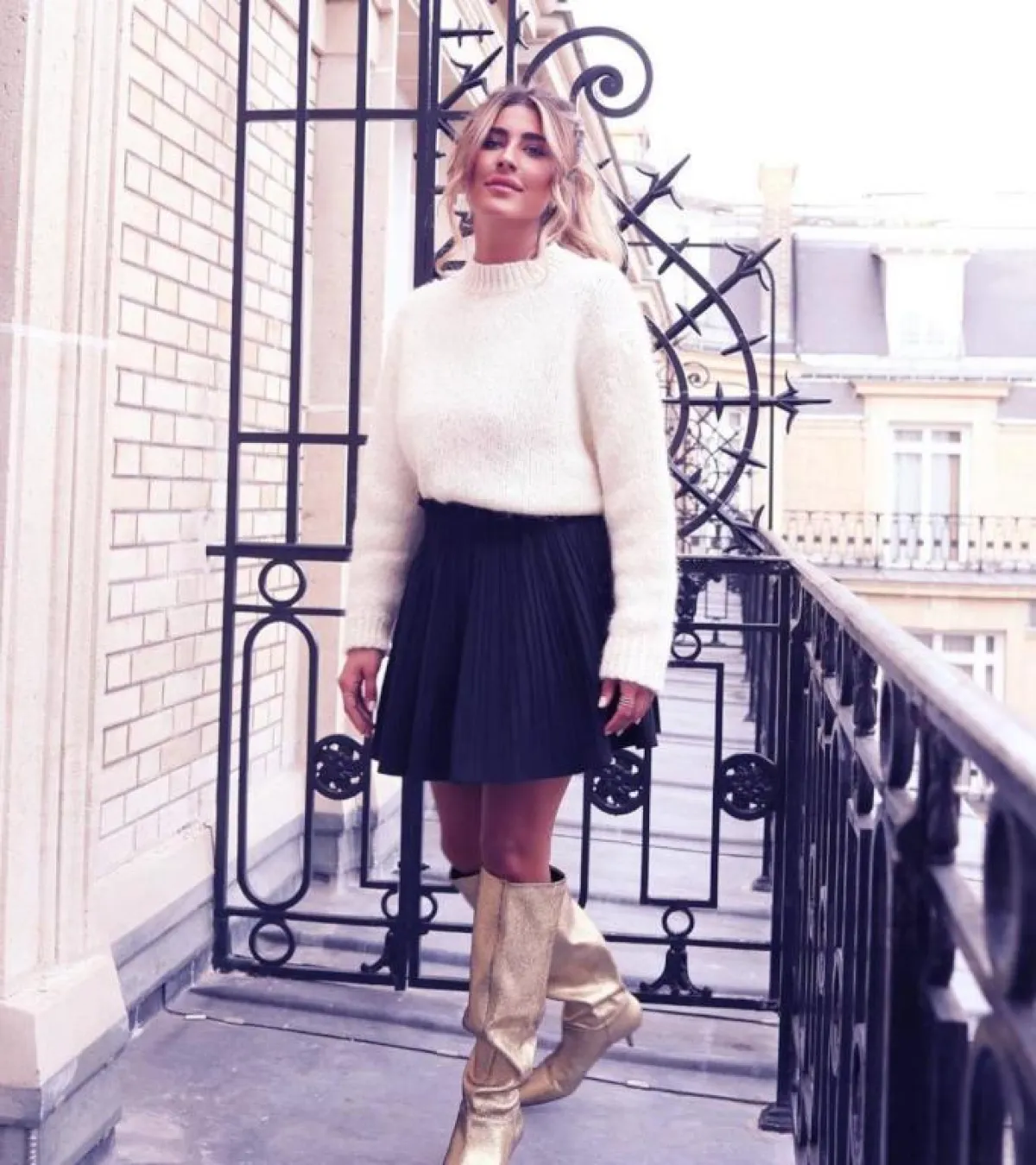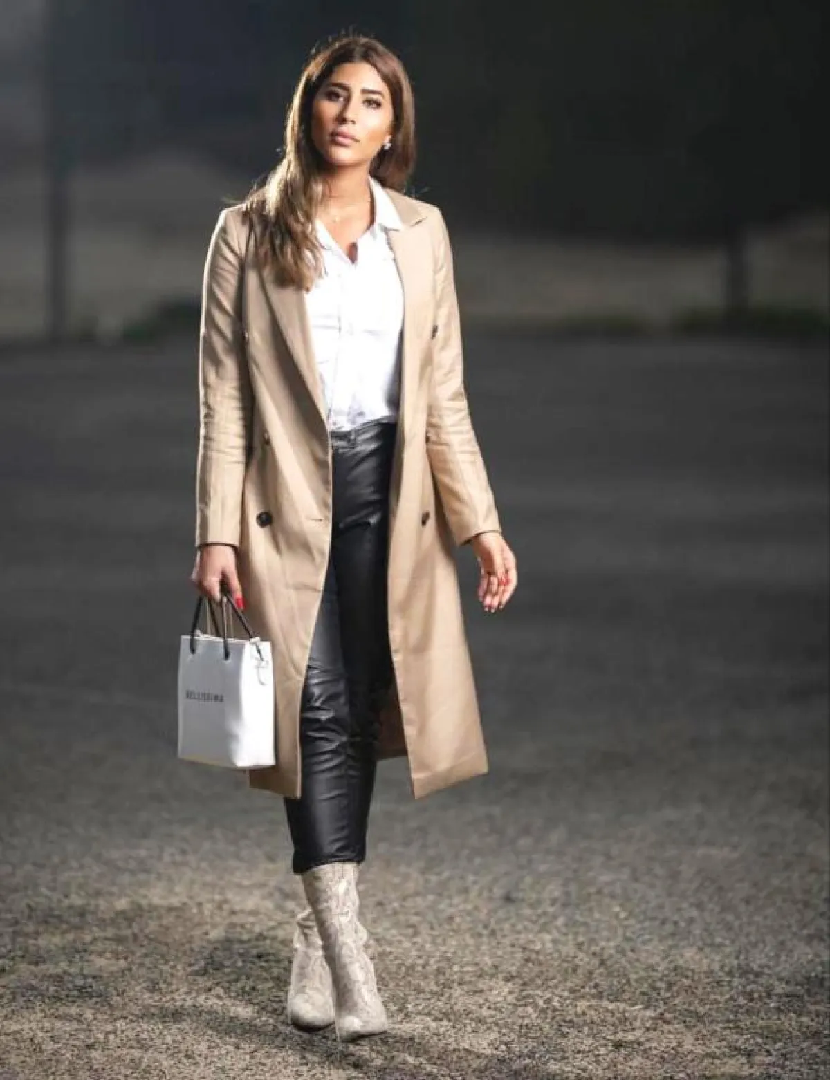 أما الإطلالات الكاجوال فأطلت ببنطال أسود وقميص أبيض مع معطف بني طويل، وارتدت تنورة وقميصًا من الجينز مع حذاء ببوت أزرق، ونسقت بنطالًا جينز مع جاكيت جلد بطبعة الثعبان وحذاء مميز بكعب، وظهرت بتنورة قصيرة من الجلد البني وبلوزة بنية بأكمام طويلة، وفي مظهر أنثوي تأنقت بتنورة سوداء وبلوزة صوفية سكرية وحذاء ببوت ذهبي.