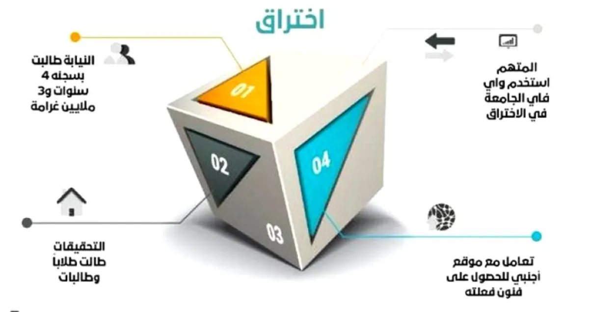 وأفادت طالبة أخرى بأن المتهم نجح في تعديل درجاتها في مادتين، واعترف لها باستخدام موقع قريب من مبنى الجامعة للدخول إلى النظام عبر شبكته اللاسلكية، فيما قال آخر: إن المخترق عدَّل درجاته مستخدماً شبكة الجامعة، كما عمل على تعديل درجات زميل له دون علمه.