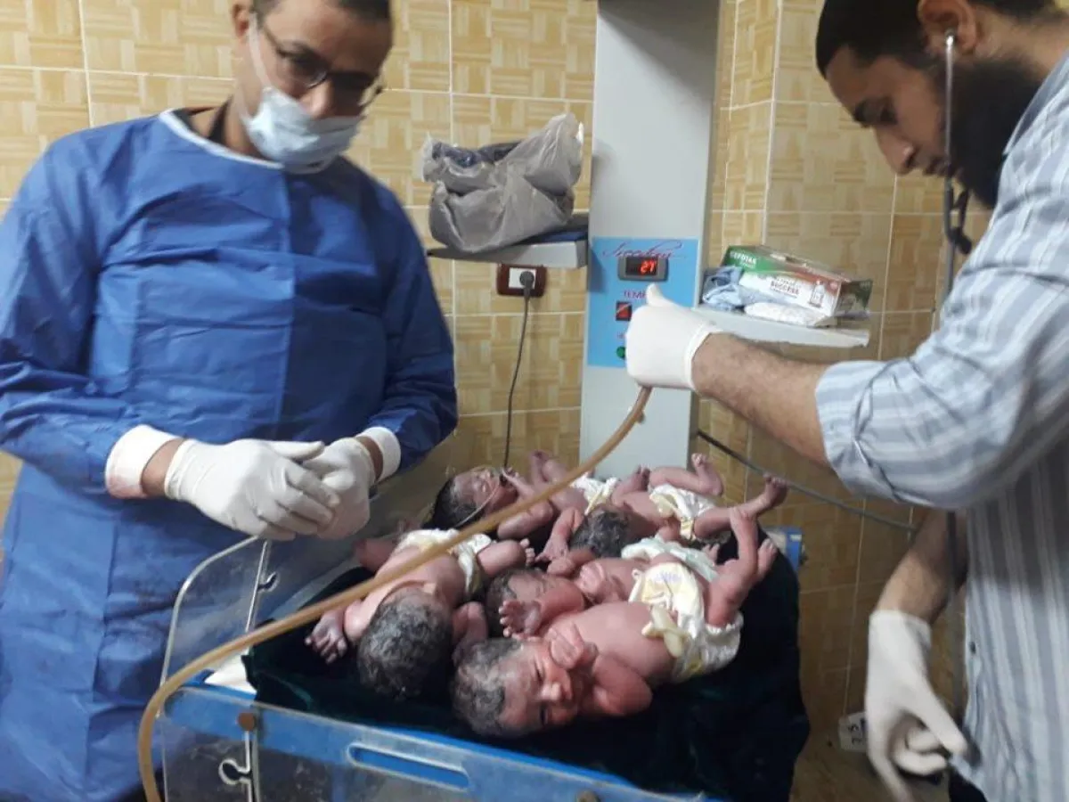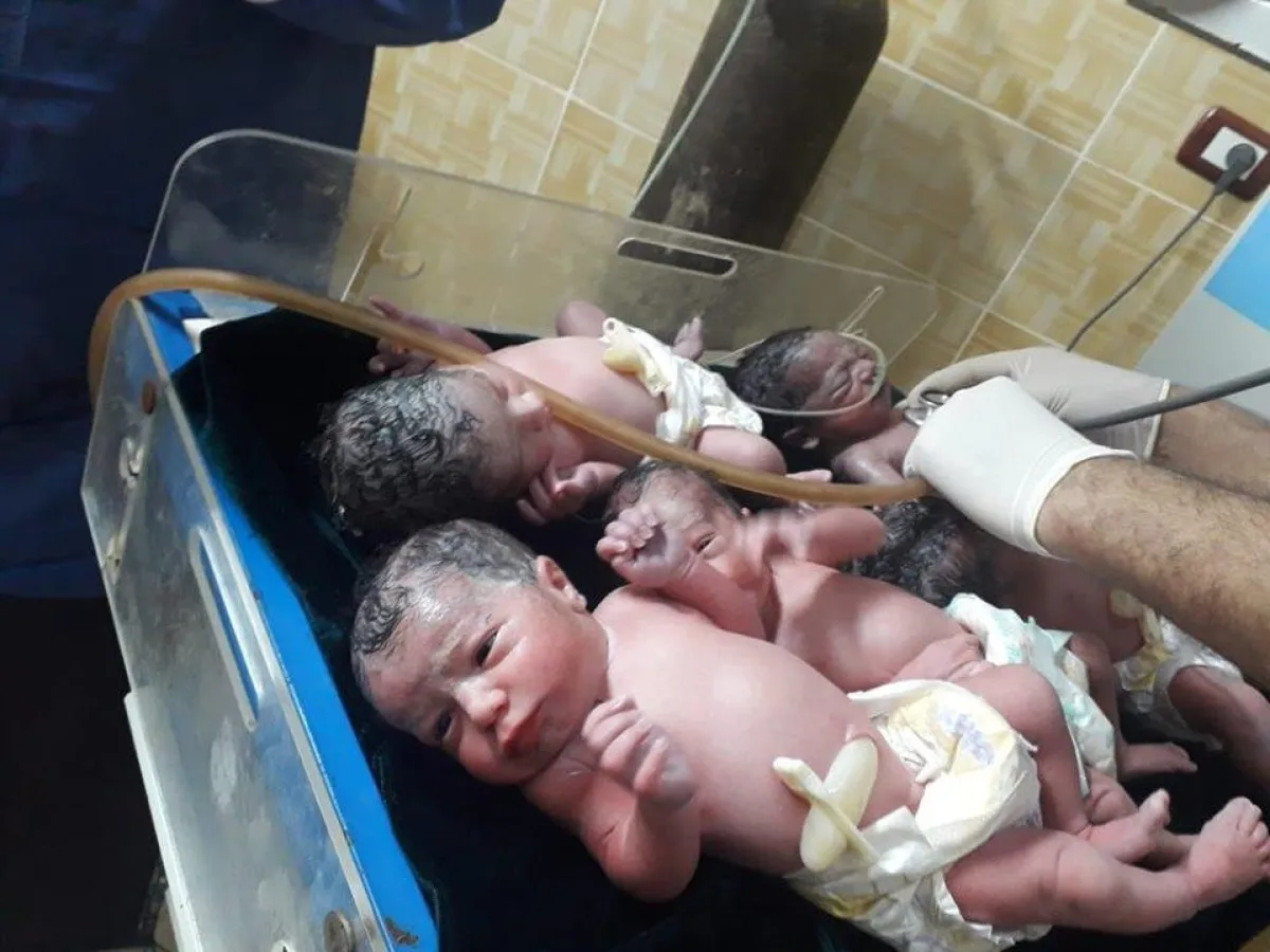 وضعت سيدة عمرها 23 عامًا 5 توائم، جميعهم بحالة صحية جيدة، وأجريت لها عملية ولادة قيصرية داخل مستشفي ديروط المركزي في محافظة أسيوط القريب من منزلها.