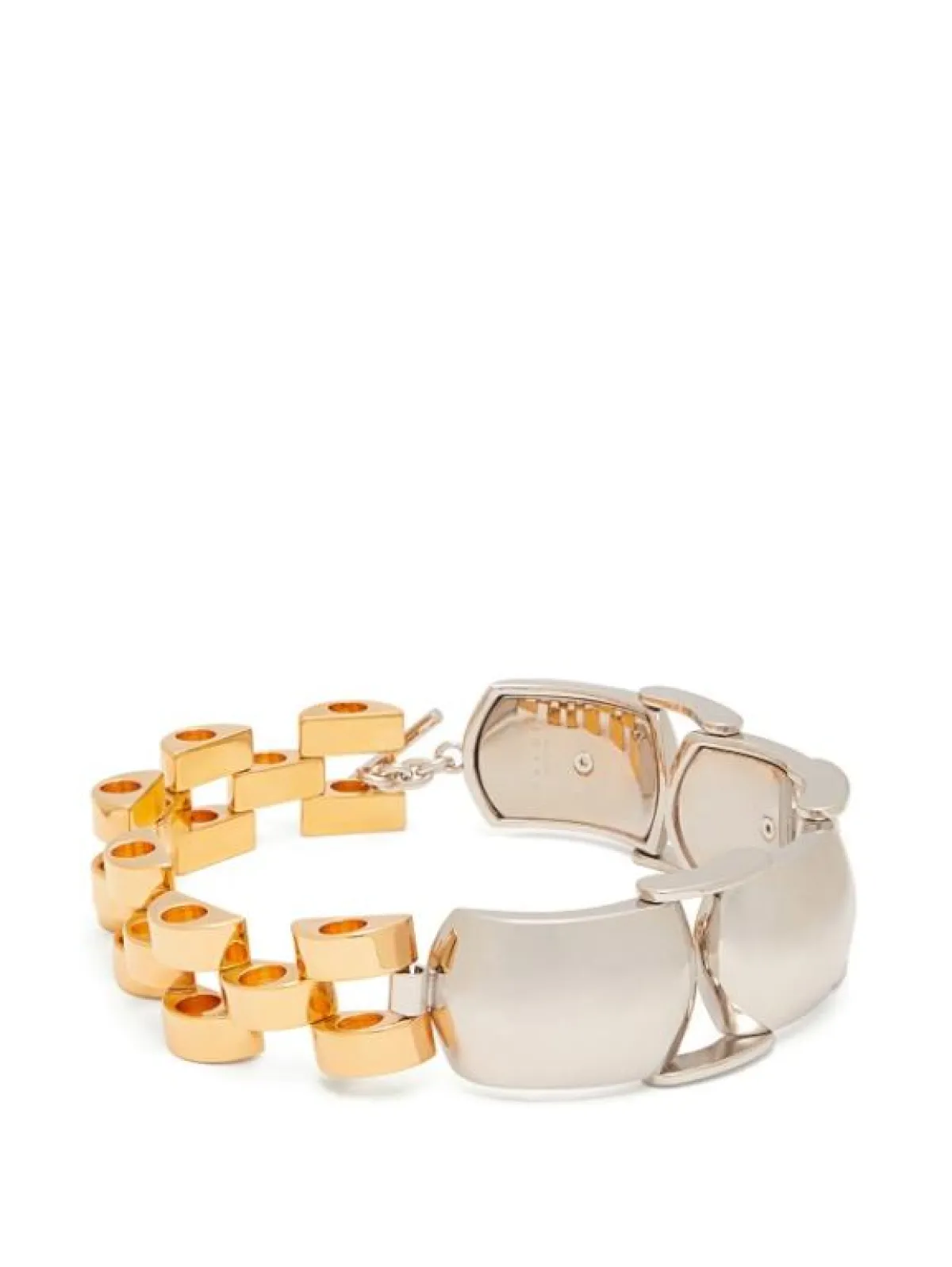 وقد لفتت نظرنا القلادة من Saint Laurent والتي جاءت بتصميم غريب وغير تقليدي، تميزت بحلقاتها المتداخلة فيما بينها.