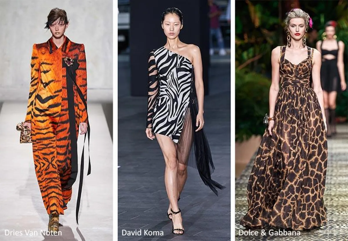 طبعة جلد الحيوانات من الطبعات التي ظهرت في الخريف ومستمرة معنا حتى ربيع وصيف ٢٠٢٠، حيث تتنوع بين رسومات جلد النمور، والفهود والحمير الوحشية مثلما في مجموعات " Dolce & Gabbana" و "David Koma" و "Dries Van Noten".