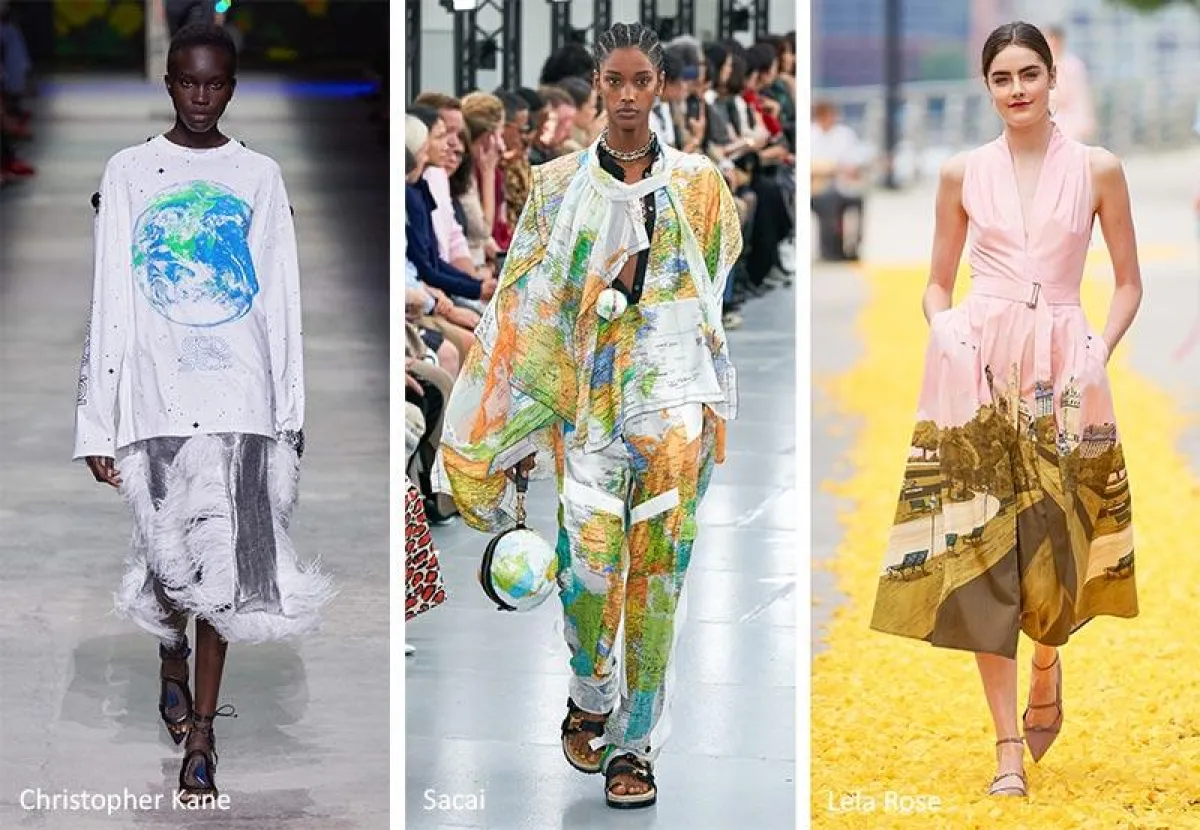 وأخيرا مع طبعة زخرفات الكرة الأرضية التي تعكس روح مدونات الموضة ومحبيها في هذا العصر الذين يتجولون ويكتشفون العالم حتى لو من خلال الانترنت، وقد ظهرت في مجموعات "Christopher Kane" و "Sacai" و"Lela Rose".
