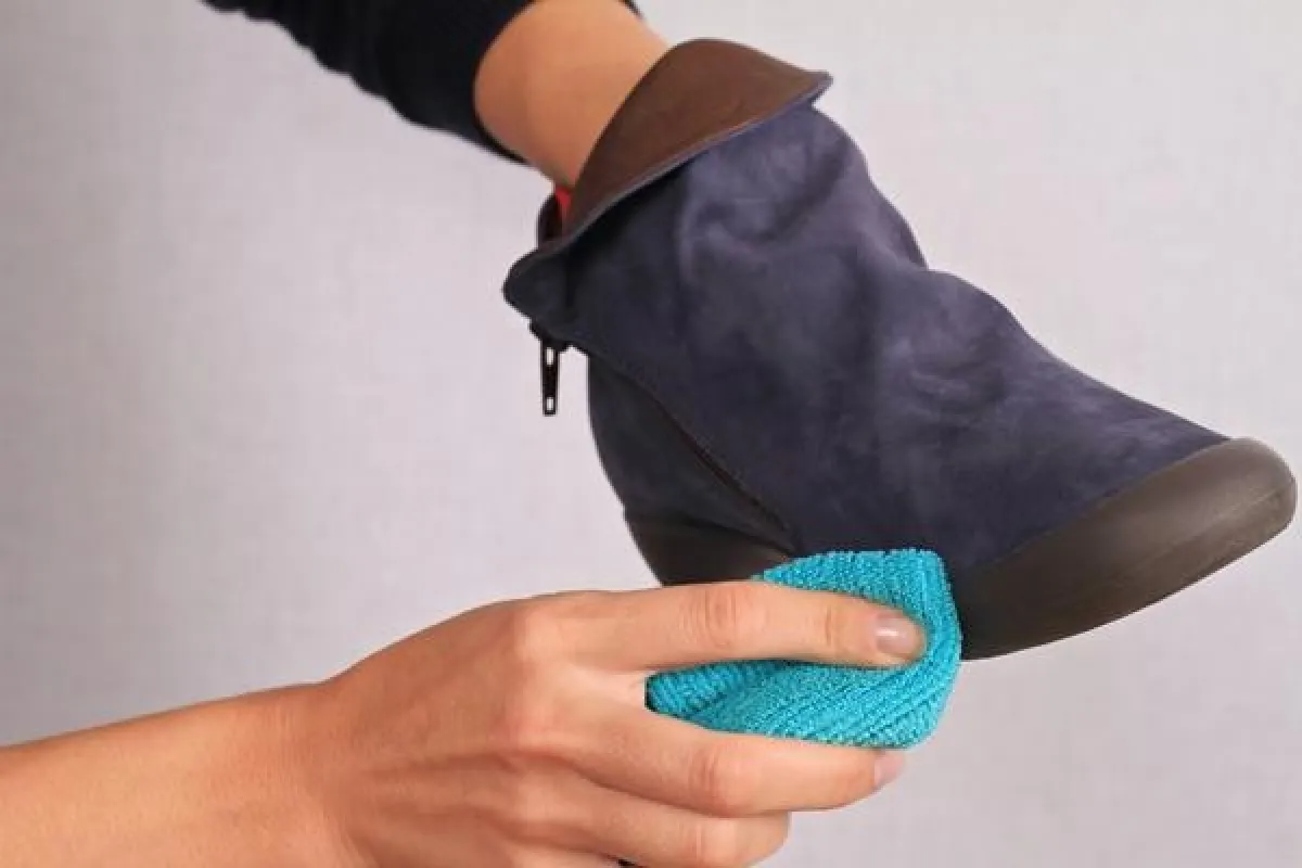 • تُنظّف الأحذية الشمواه، باستخدام المبرد أو ورقة صنفرة لإزالة بقع الطين أو أيَّة بقع أخرى عنها. وإذا كان الحذاء متسخًا للغاية، يجب وضعه فوق بخار الغلاية بضع ثوان، ثمّ إزالة البقع بالمبرد.