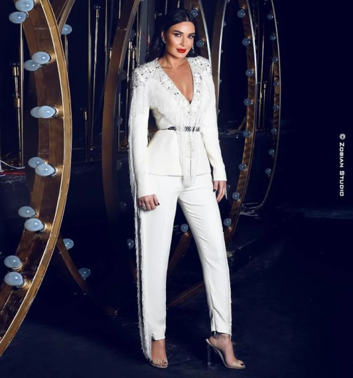 اطلالة لافتة ثانية من رامي قاضي Rami Kadi اعتمدتها سيرين عبد النور مؤخرًا في فستان سهرة براق، قصته تبدو وكأنه كورسيه باللون الفضي مع تنورة ماكسي مزينة بالشراريب الملونة اللامعة، ولهذا من الممكن في هذا اللوك أن تستوحي من القسم العلوي كورسيه مع تنورة أو بنطلون أسود، أو من الممكن أن تستوحي من القسم السفلي فكرة تنورة قصيرة تنسيقها بأسلوب شبابي.