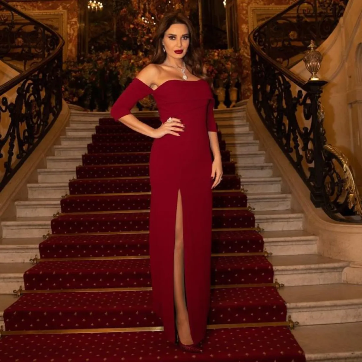 جمبسوت باللون الأحمر تألقت به سيرين عبد النور: