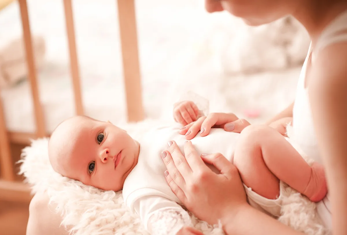 تدليك بطن الرضيع بزيت الزيتون الدافئ يساعد على تخليصه من الغازات
