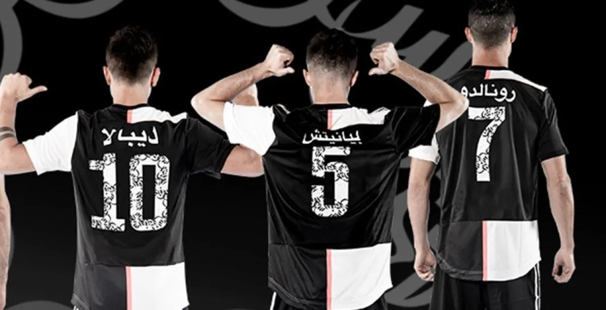 سابقة تاريخية تحدث للمرة الأولى في ملاعب كرة القدم، سوف يشاهدها العالم كله في المملكة العربية السعودية، وذلك بعد أن أعلن نادي السيدة العجوز الإيطالي، يوفنتوس، واحد من أفضل فرق كرة القدم في العالم حالياً، بأن نجومه سوف يرتدون قمصان النادي في أرض الملعب، وأسماؤهم مكتوبة باللغة العربية، وليست الإنجليزية كما جرت العادة.