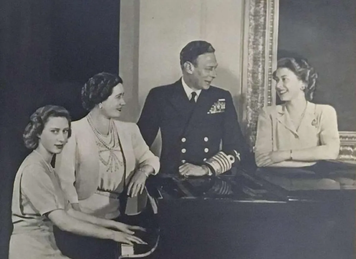 1- تعود هذه البطاقة البريدية إلى عام 1947 ويظهر في الصورة الملك جورج السادس ملك بريطانيا وعلى يساره الملكة الأم فيما تجلس على يمينه ابنتاه الأميرة مارغريت وشقيقتها الأميرة إليزابيث التي كانت قد تزوجت من الأمير فيليب في العام نفسه والذي مُنح لقب دوق أدنبرة.