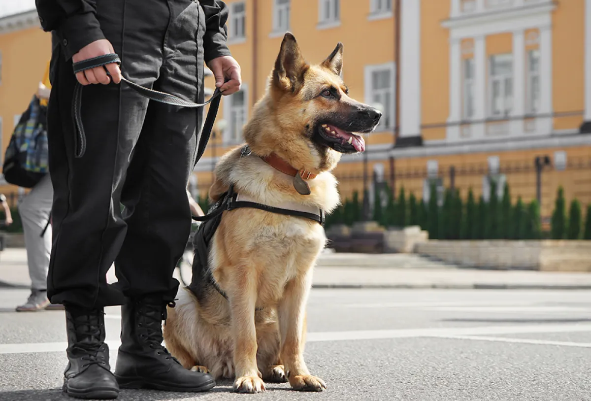 قفز كلب بوليسي ماهر عبر نافذة مهشمة جزئياً للقبض على سائق هارب من الشرطة، وهو يبلغ من العمر 7سنوات ويدعى <دوق> شوهد وهو يعتقل رجلاً تطارده الشرطة في ولاية كاليفورنيا.