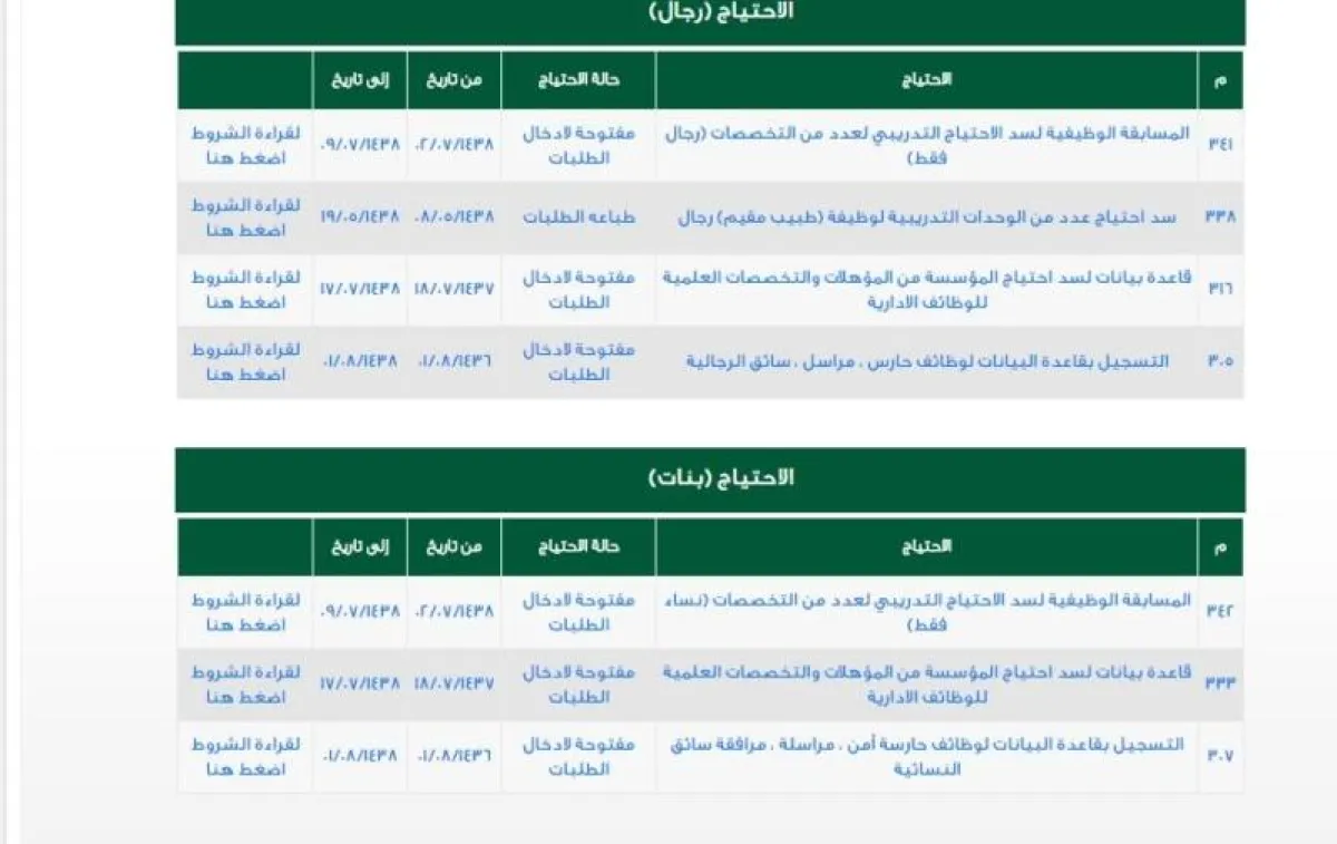 • المسابقة الوظيفية لسد الاحتياج التدريبي لعدد من التخصصات (رجال فقط) لعام 1441هـ.