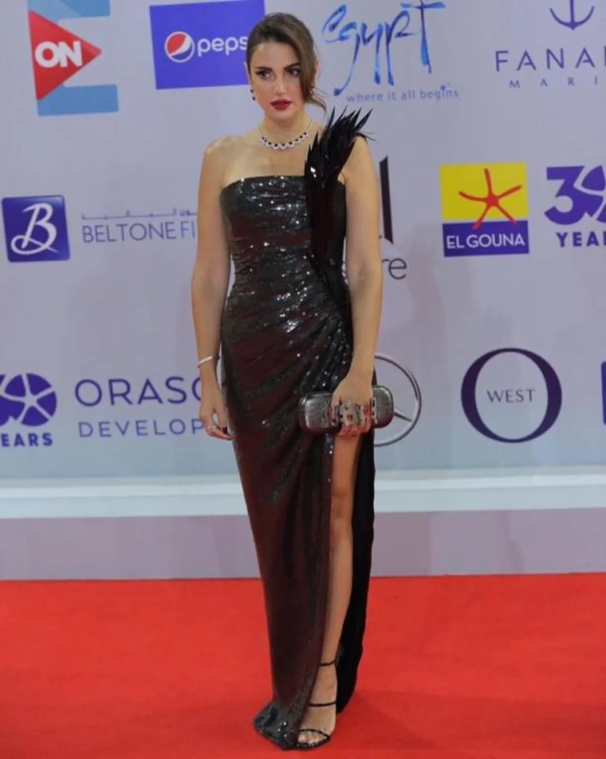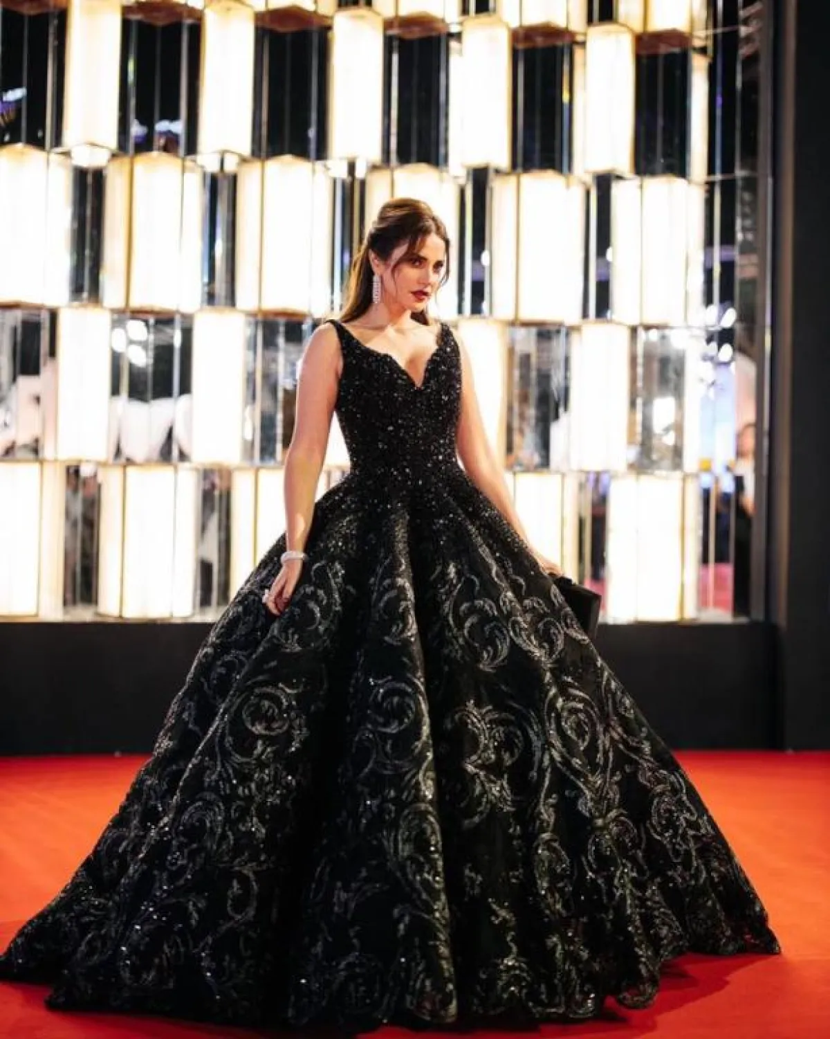 فستان أسود من الترتر اختارته درة زروق على السجادة الحمراء
