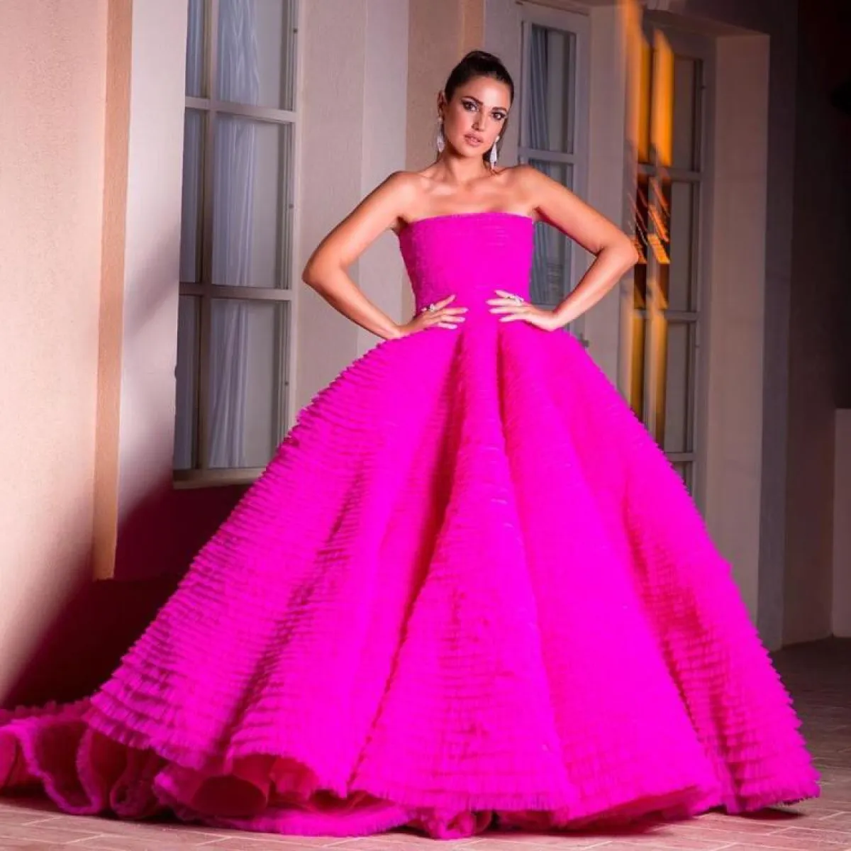 فستان فوشيا مستوحى من فساتين الأميرات اختارته درة زروق