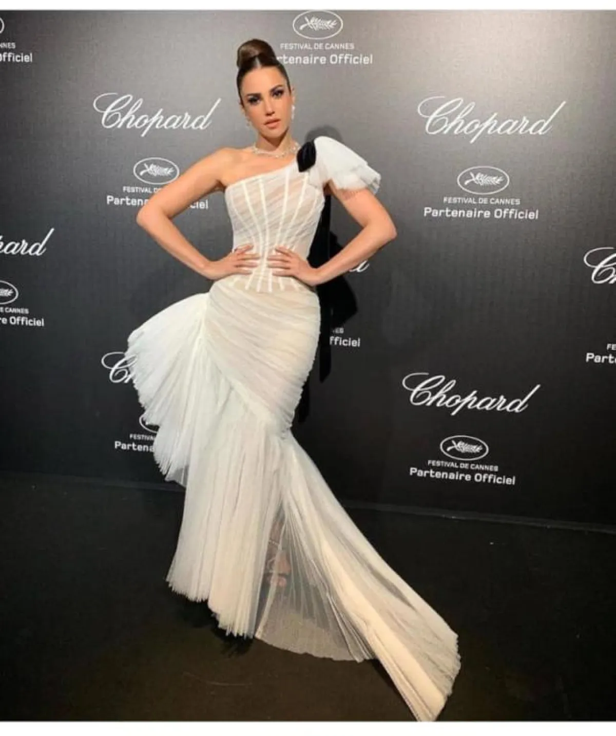 إطلالة مميزة تألقت بها درة زروق على السجادة الحمراء في مهرجان عالمي في لوس أنجلس، وقد اختارت فيها فستانا فاخرا من أوسكار دي لا رينتا Oscar de la Renta بقصة الكورسيه من الأعلى باللون الأسود مع تنورة من الكشكش باللون الأبيض. وقد نسقت معه صندل كعب عال أسود وحقيبة كلاتش أنيقة.