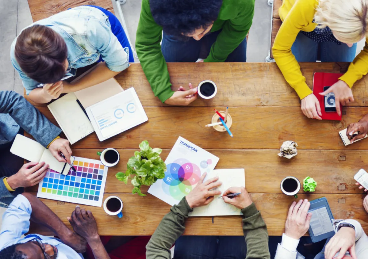 إن وجدتِ نفسك في يوم من الأيام عاجزة على الخروج بأفكار إبداعية في وظيفتك، فلا تبتئسي، وتذكّري أنّك لست مضطرّة لحلّ هذه القضية بمفردك. اجمعي فريقك أو زملاءك في العمل وخذي برأيهم. يمكنك أيضاً أن ترتّبي لقاءات عصف ذهني أثناء ساعات الدوام أو بعدها لتبادل الأفكار، فالتفكير مع الجماعة أفضل بلا شكّ من التفكير منفرداً. فضلاً عن أنّه سيسهم في الخروج بعدد أكبر من الأفكار، فهو يحفّز دماغك وينشّطه أكثر لتخرجي بأفكار أكثر إبداعاً.