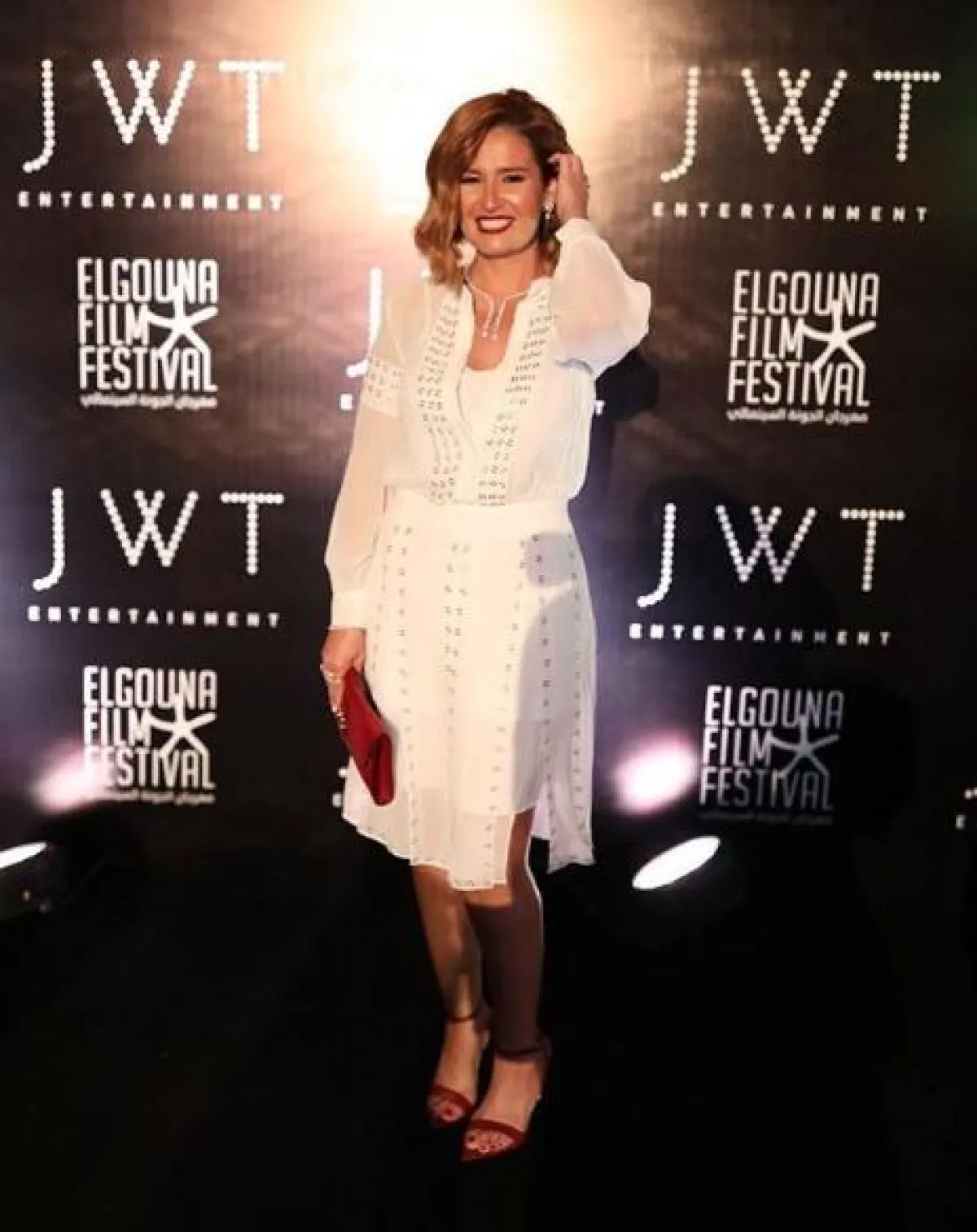 شاهدنا هنا شيحة في لوك ناعم اعتمدته لإحدى المناسبات على هامش مهرجان الجونة السينمائي، وقد اختارت فيه فستان ميدي مصنوعًا من قماش الشيفون باللون الأبيض، أكمامه طويلة وقصته منسدلة، وقد نسقت معه اكسسوارات باللون الأحمر عبارة عن صندل بكعب عالٍ وحقيبة كلاتش أضافت من خلالهما لمسات حيوية.