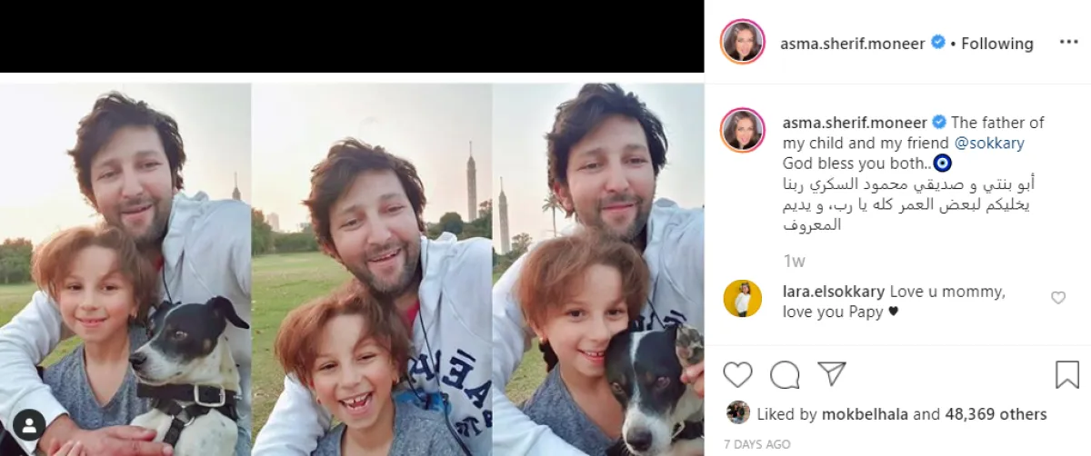 أسما نشرت صورة طليقها برفقة ابنتهما عبر حسابها بموقع إنستقرام وعلقت عليها قائلة: أبو بنتي و صديقي محمود السكري ربنا يخليكم لبعض العمر كله يا رب، و يديم المعروف، ورغم أن الرسالة لا تضم كلمات رومانسية إلا أن بعض متابعيها اتخذها وسيلة للسخرية من زوجها الحالي محمود حجازي.