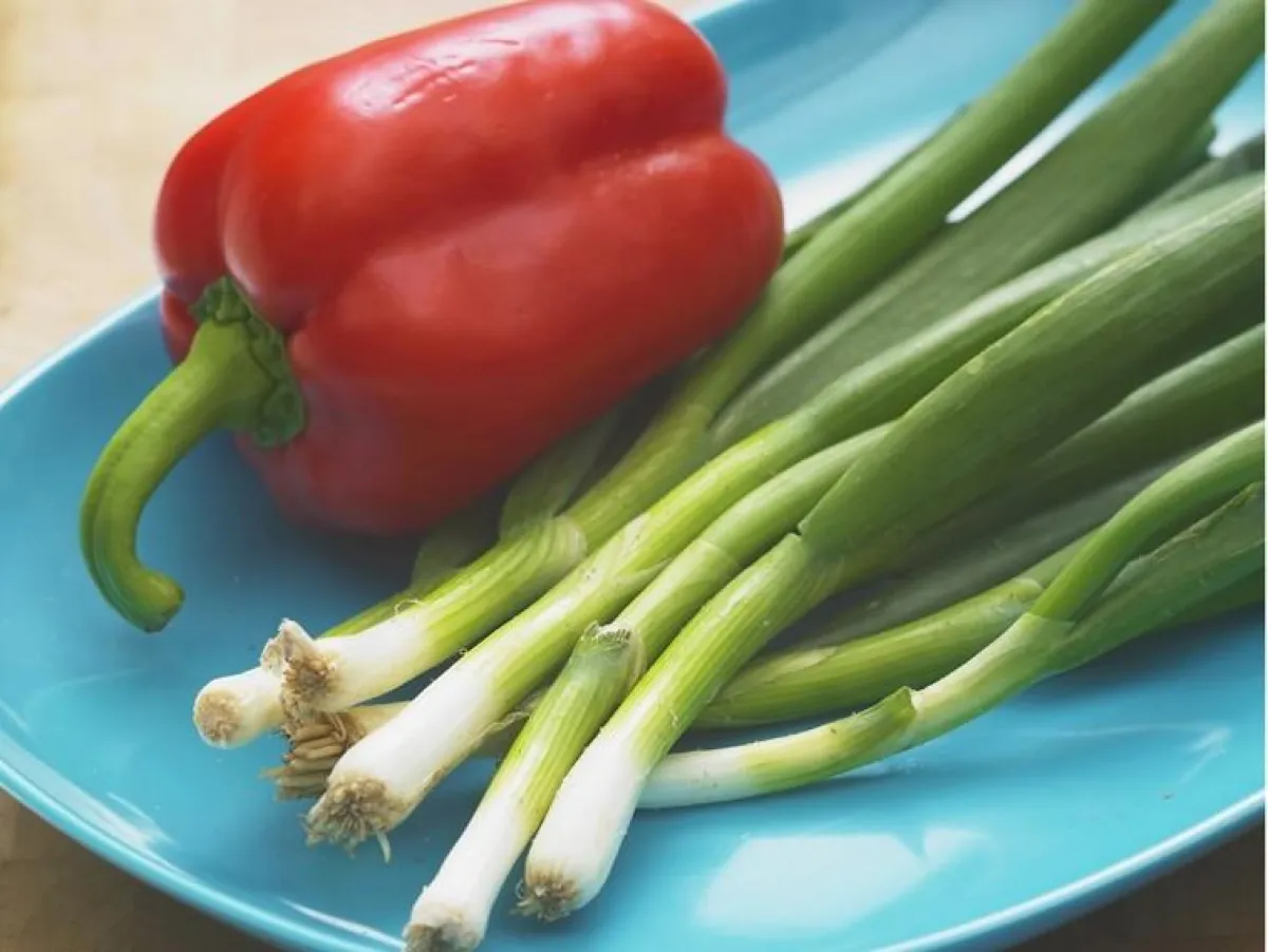 - حبتان من البصل الأخضرالمقطع الى شرائح