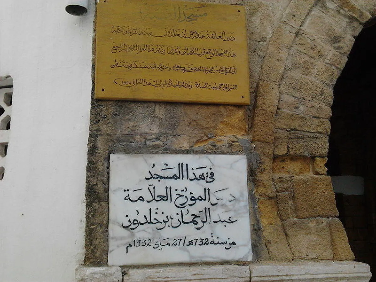 وفي نفس الحي بالمدينة العتيقة وعلى بعد 100 متر من هذا البيت يقع مسجد صغير، على جداره الخارجي رخامة جاء فيها: «في هذا المسجد درس العلامة عبد الرحمن بن خلدون».