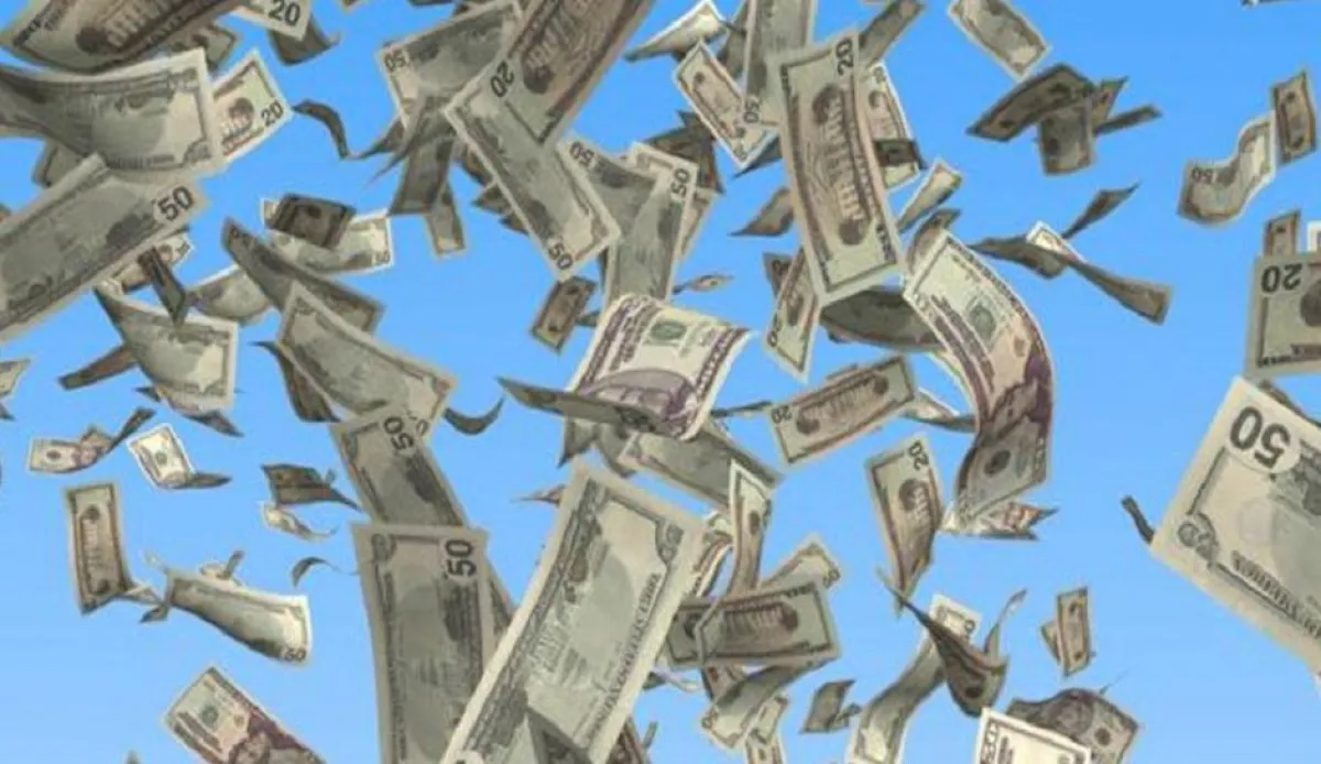 لص يسرق مصرفاً ويلقي النقود على المارة