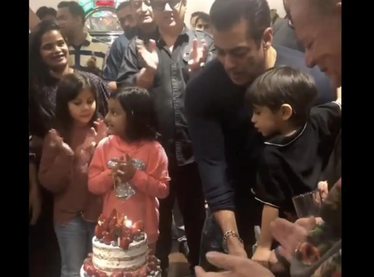 ولهذه الغاية تداول رواد التواصل الاجتماعي فيديوهات عبر انستقرام، تُظهر سلمان وهو يحتفل بميلاده وسط جمهوره ومحبيه، حيث يظهر وهو يقطع قالب الحلوى برفقة الطفل أهيل ابن شقيقته أربيتا خان Arpita Khan، على وقع أغنية الميلاد له.