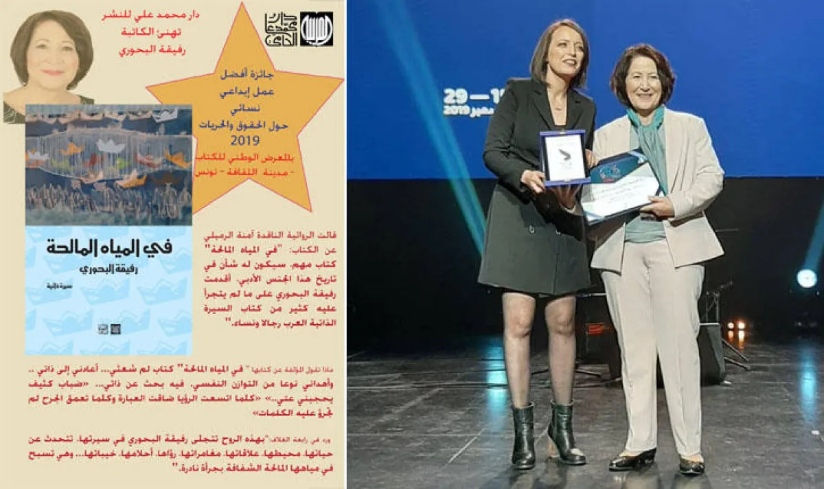 حصلت الكاتبة التونسية رفيقة البحوري على جائزة معرض تونس للكتاب للإبداع النسوي، حول الحقوق والإبداع عن روايتها «في المياه المالحة» كأول سيرة نسائية تونسية.