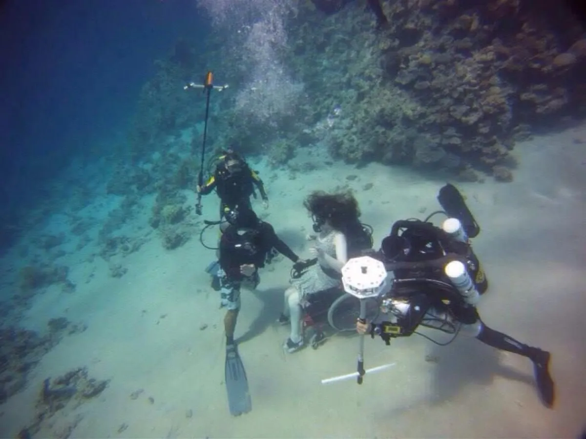 نجح غواص مصري في الغوص بسيدة من ذوي الاحتياجات الخاصة في رأس محمد، وهي على مقعدها المتحرك، في أعماق «محمية رأس محمد» في جنوب سيناء.