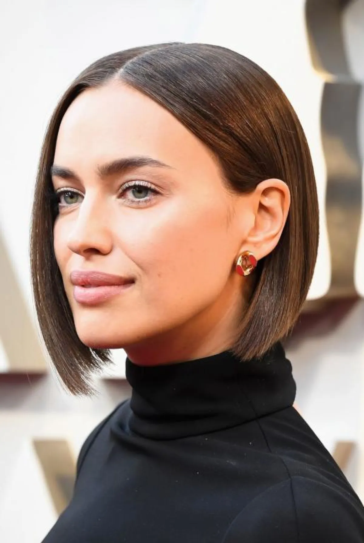 تسريحات الشعر القصير الأملس مع الفرق من المنتصف بأسلوب Irina Shayk
