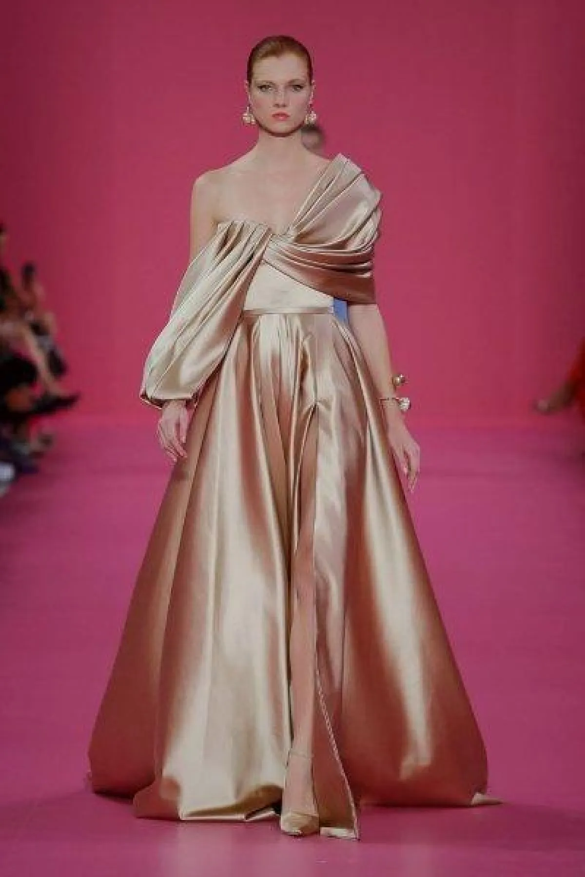 قدمت ماركة رالف وروسو Ralph & Russo فستان ذهبي بكم واحد وبلمعان يخطف الأنفاس.