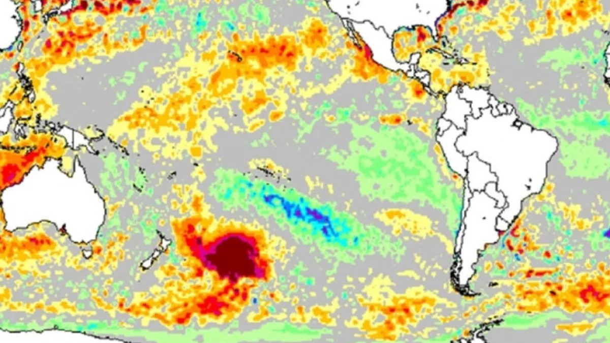 باتت الظواهر الطبيعية التي تظهر من فترة إلى أخرى تثير حيرة وقلق العلماء، كون أغلبها ينذر بكوارث بيئة مخيفة، ومؤخرًا ظهرت على الخرائط الحرارية للكرة الأرضية بقع حمراء عميقة وضخمة ممتدة على مساحة مليون كيلومتر مربع في المحيط الهادي، قبالة شواطئ نيوزيلندا الشرقية مما أثار حيرة العلماء لعدم معرفة سببه.