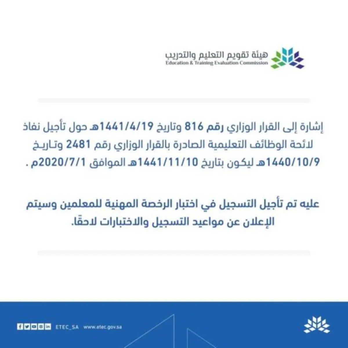 بيان هيئة تقويم التعليم والتدريب