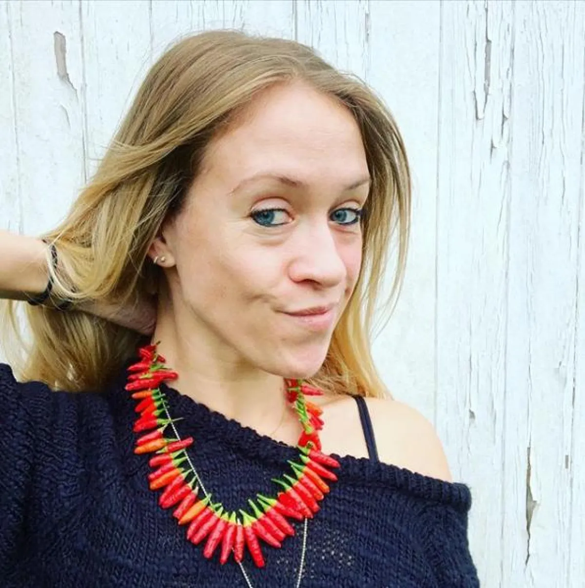 لوسي تضع عقداً من الفلفل بدلاً من المجوهرات