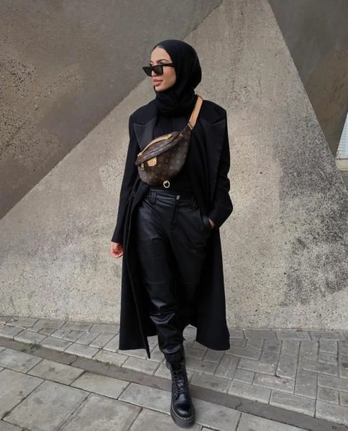 كوني السباقة في تطبيق آخر صيحات الموضة بإعتماد البناطيل الجلد لا سيما واسعة القصة لتلائم أسلوبك المحتشم، نسقيها مع إطلالة سوداء مؤلفة من كنزة صوف خفيفة ومعطف طويل وأنتعلي بوت مزود برباط أمامي وأرتدي حقيبة الخصر على الكتف لإطلالة عصرية أنيقة.