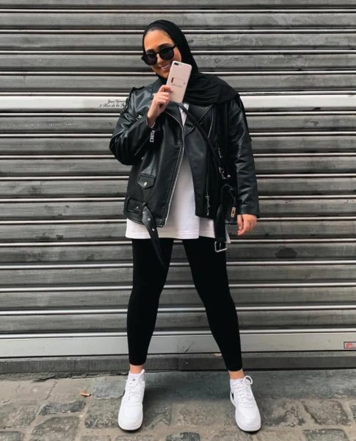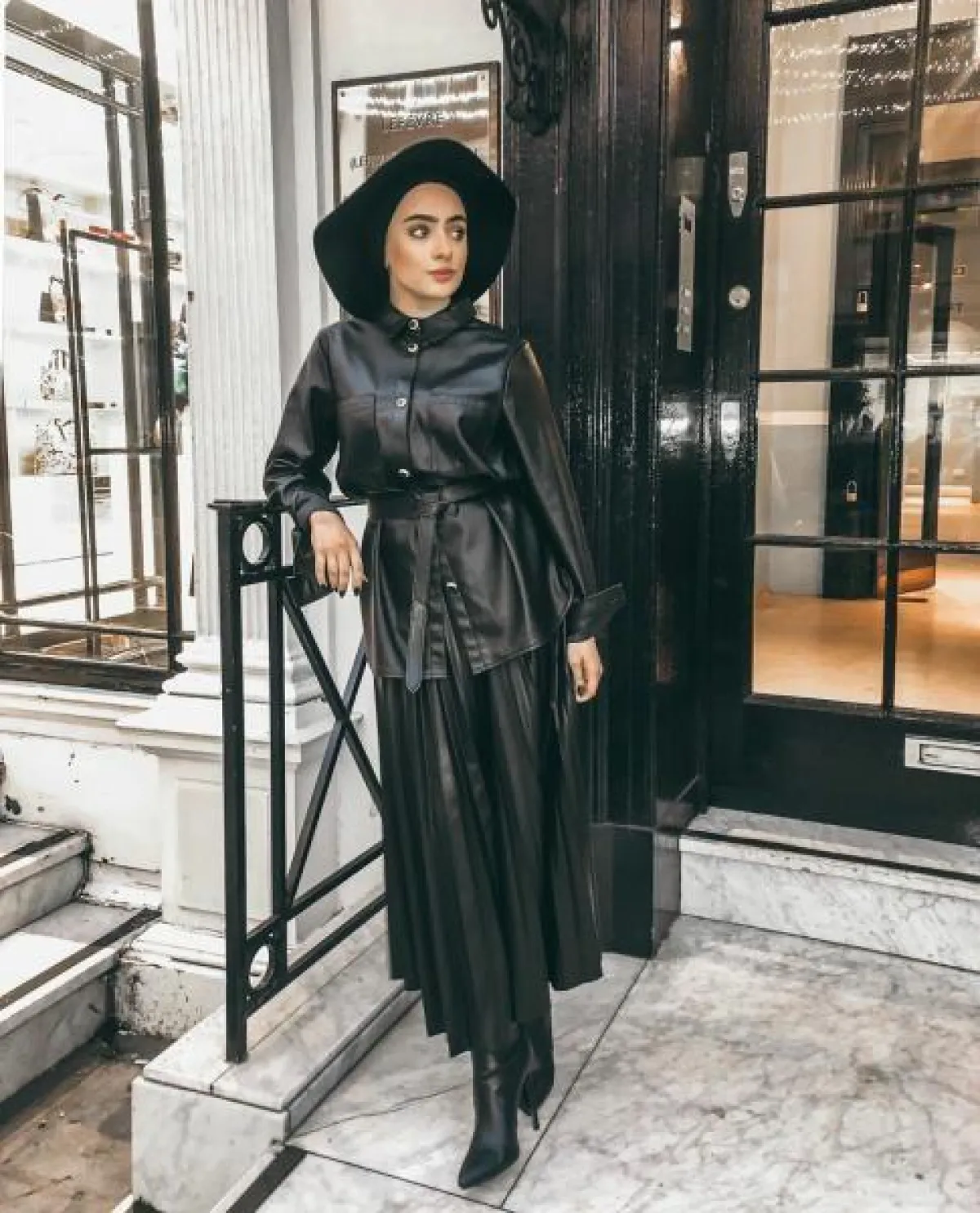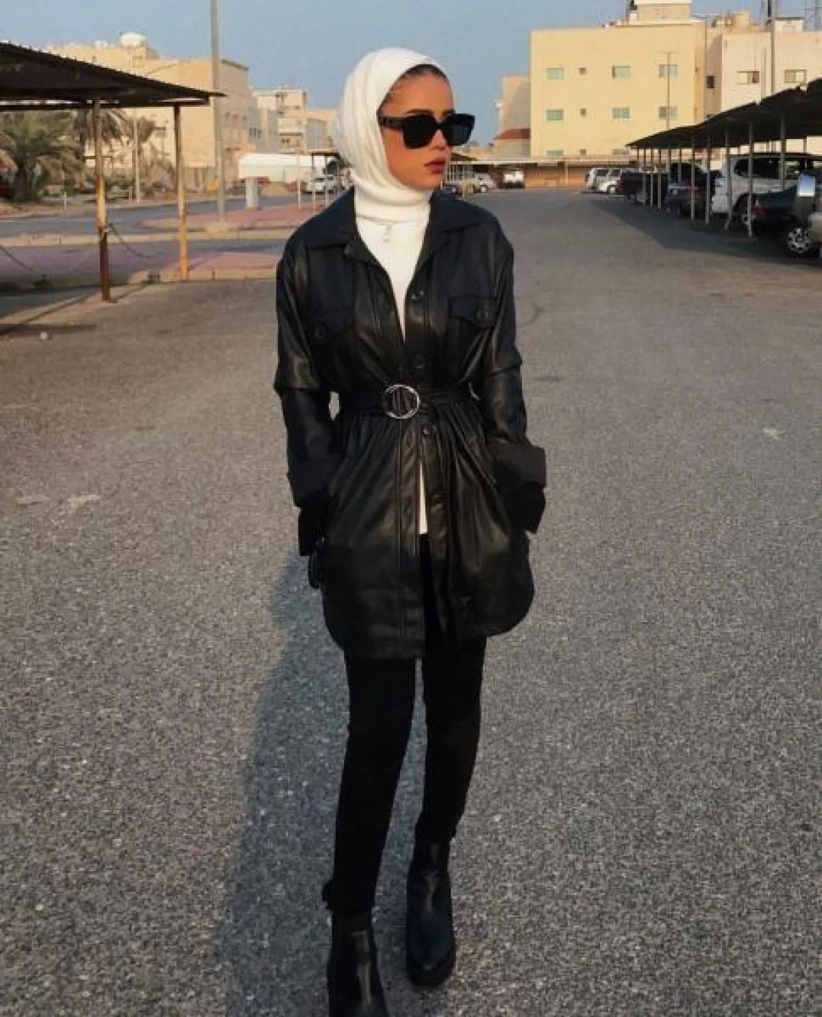 طرق تنسيق الملابس الجلد مع الحجاب