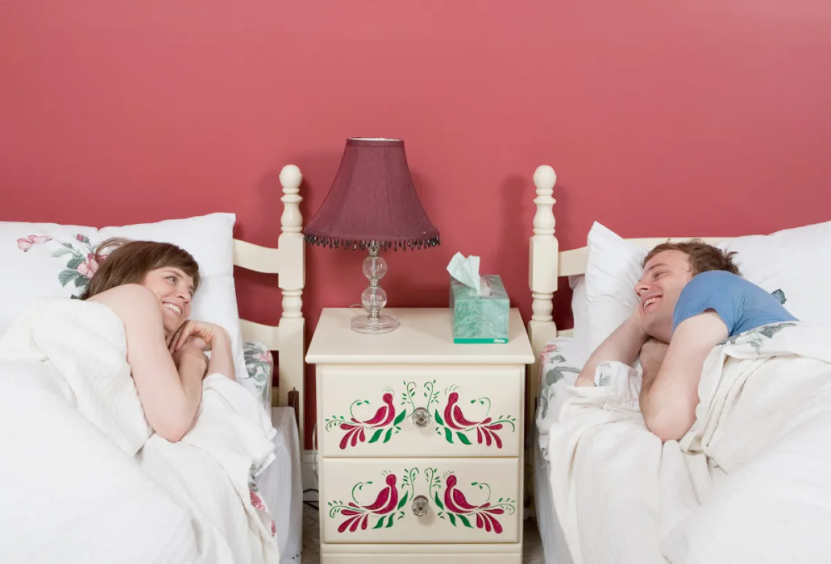 دعونا نواجه الأمر النوم في سرير منفصلاً يزيد من الشوق للطرف الآخر، ويدعم العاطفة بينكم خصوصاً عند القيام بممارسة العلاقة الحميمية؛ لأنك تتمكن من الدخول في مرحلة النوم العميق التي تحسن المزاج وبالتالي يؤثر على العلاقة الحميمية.