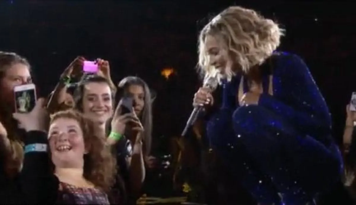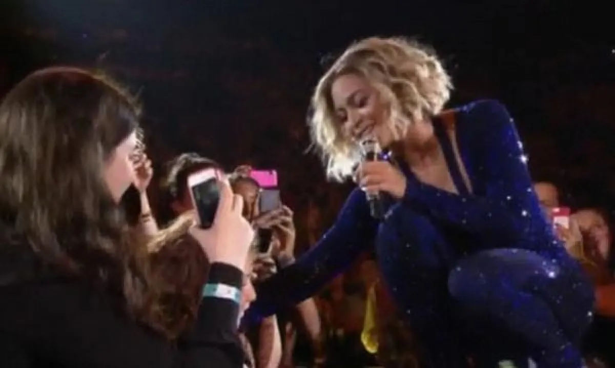 خلال الحفل الذي أقامته النجمة العالمية Beyonce في مدينة بيرث الأسترالية، طلبت من طفلةٍ مكفوفة، كانت دعتها شخصياً إلى الحفل، أن تغنّي معها قبل أن تضع قبلةً على خدّها.