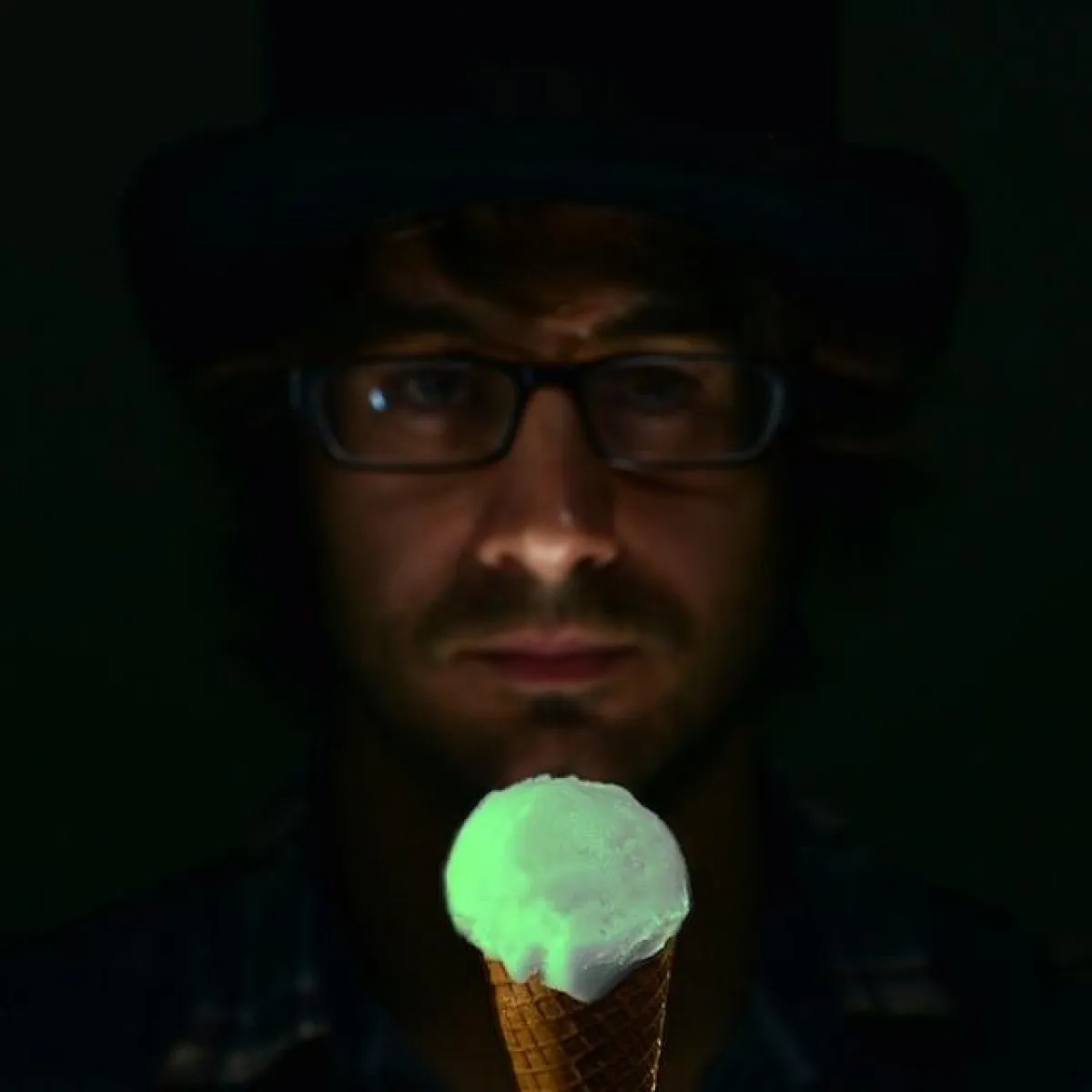 وبحسب مخترعي هذا الآيس كريم فإنه يحصل على لونه الأخضر المشع من نسخة مولفة من البروتين المستخرج من كائنات قنديل البحر المشعة. يقول رجل الأعمال البريطاني تشارلي فرانسيس، الذي أسس شركة الآيس كريم Lick Me I'm Delicious عن طريقة عمل هذا البروتين المشع: "يتفاعل البروتين الذي استخدمناه مع مستوى حموضة اللسان الطبيعية، فكلما دفّأ الفم البروتين سيرتفع مستوى الحموضة ما يزيد من اشعاع الآيس كريم".