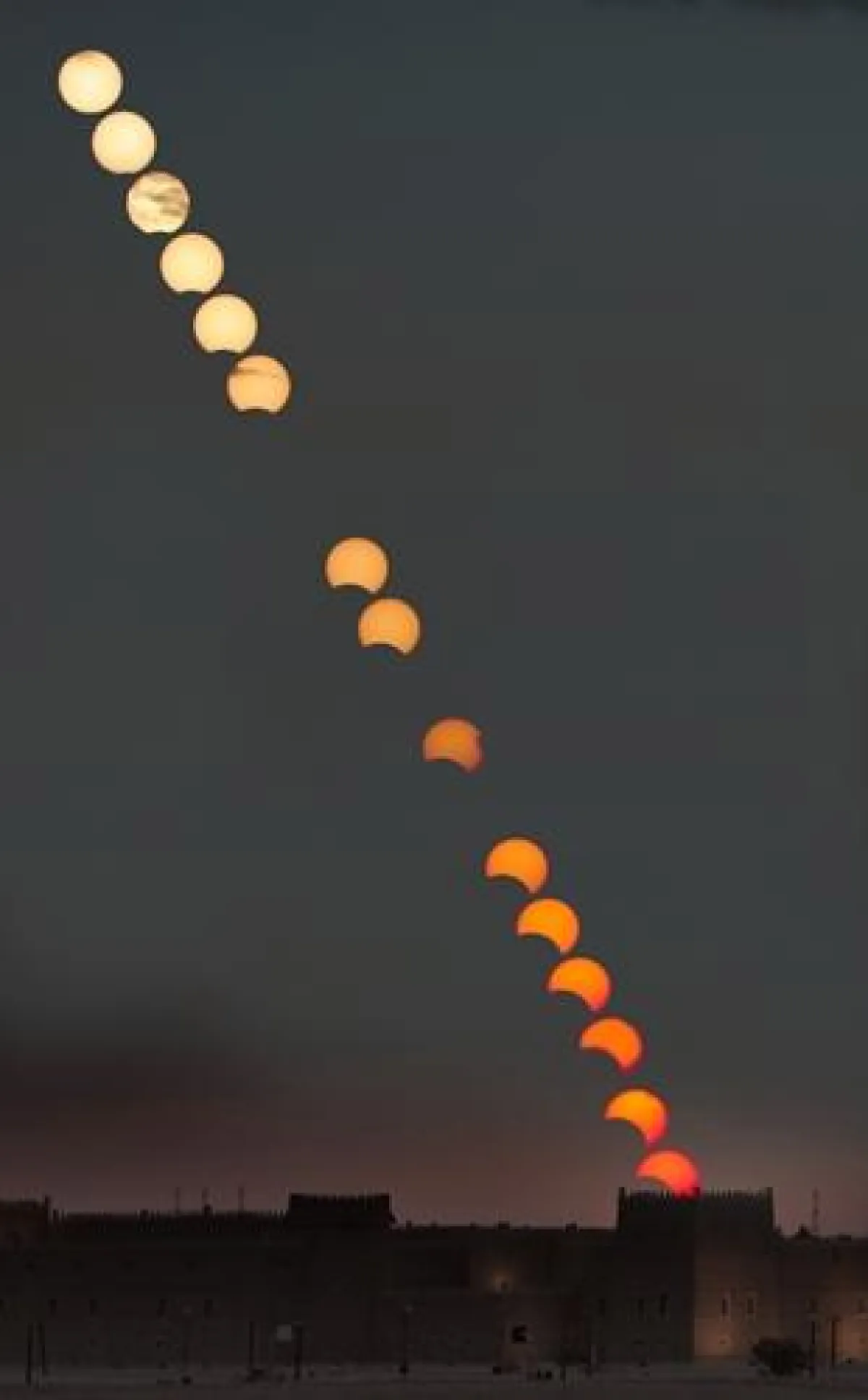 حصل مصور من الإمارات على الصورة الفائزة بالمركز الأول في المشروع الإسلامي لرصد الأهلة والمخصّصة لكسوف الشمس يوم 3 نوفمبر.