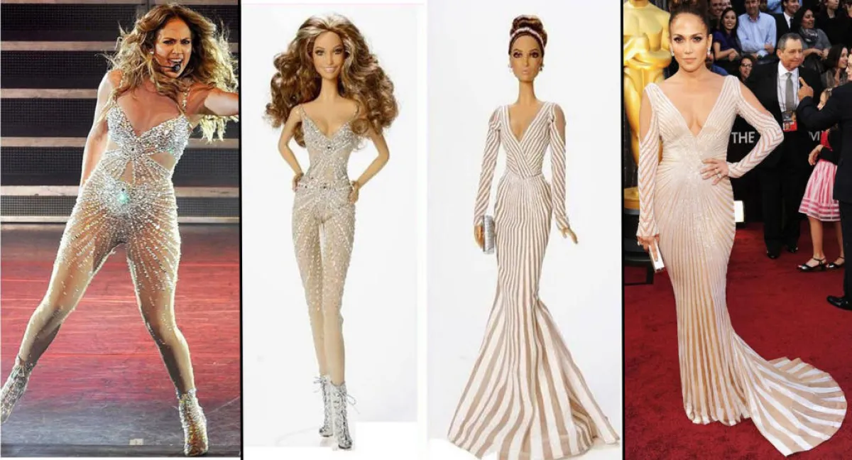 Jennifer Lopez البالغة من العمر 44 عاماً والتي سبق أن انسحبت من فيلم بسبب غيرتها، اشتهرت منذ التسعينات كمغنية وممثلة، إلى جانب امتلاكها جسداً رائعاً ومؤخرة، أعطتها توقيعاً مميّزاً وخاصّاً بها. وعندما قررت شركة "ماتيل" المنتجة لدمية Barbie الشهيرة أن تكرّم النجمة Lopez بدمية مشابهة لها، لم تراعِ المقاسات الجسديّة الوافرة التي تتمتّع بها Lopez، بل استعملت القياس صفر، ما جعلها تكرم الفستان فقط، الذي كان بتوقيع المصمّم اللبناني العالمي زهير مراد. وما كان يجب أن يكون محل إطراء للفنانة، تحوّل إلى ضجة وانتقادت كثيرة على مواقع التواصل الاجتماعي وفي المجال الإعلامي، حيث عبّر المدونون عن سخطهم، ملخّصين أنّ هذه الدمية لا تملك من مواصفات Jennifer Lopez سوى شعرها وفستانها.