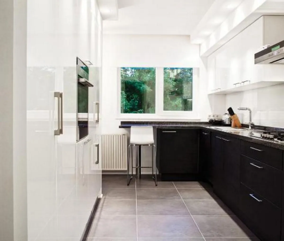 أمّا المطبخ، فأنيق ومميّز لمزجه اللونين الأسود والأبيض في ديكوراته.وقد جعلت الإضاءة موزّعة بذكاء في داخل السقف.