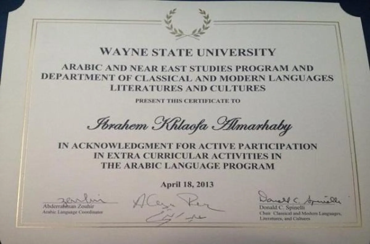 بكلِّ جدارة وتميُّز حصل المبتعث السعوديّ إبراهيم بن خلوفة المرحبي عضو هيئة التدريس بجامعة الجوف، والمبتعث لدراسة الماجستير بجامعة "وين استيت" الأمريكيَّة في كليَّة دراسات الشرق الأدنى/ تخصص الأدب الحديث، مؤخَّراً على عضويَّة جمعيَّة المفتاح الذهبيّ العالميَّة (Golden Key) لهذا العام 2013 للتميُّز والتفوق العلميّ والبحثيّ، والتي تمنح سنوياً للطلاب المتميِّزين على مستوى الجامعات الأمريكيَّة.