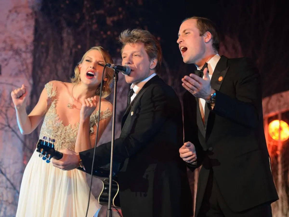 واستقبل الأمير William النجمان Swift و Bon Joviعند وصولهم الى الحفل الخيري المقام في قصر كنسينغتون لكن أحداً لم يكن ليتوقع أن دوق كامبريدج، المصنّف ثانياً في ترتيب ولاية العرش البريطاني لديه موهبة جعلته يقبل دعوة Jovi بالصعود الى المسرح ومشاركته غناء " Livin' On A Prayer" انما اشترط الأمير مشاركة Swift معهم، حسب ما ذكر موقع "dailymail" البريطاني.