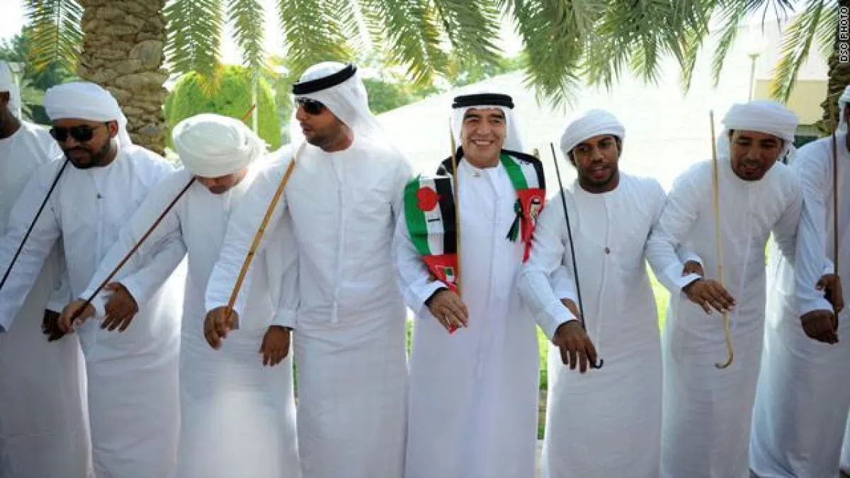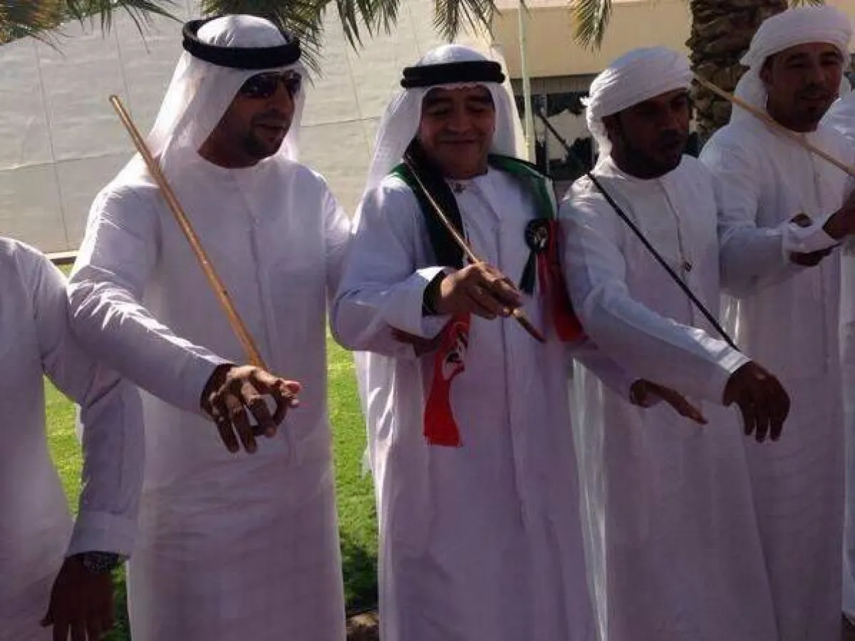 وتفاعل Maradona، الذي يعتبر سفيراً شرفياً للرياضة في دبي، مع الأغاني الوطنية الإماراتية والرقصات التراثية، وشارك الفرقة الفنية رقص "الرزفة"، حيث فوجئ الجميع بإجادته هذه الرقصة وسعادته بأدائها، وقال: "العالم اختار أفضل مكان لتنظيم هذا الحدث، ودولة الإمارات ودبي تحديداً ستنجح في هذه الاستضافة وستقدم للعالم حدثاً فريداً"؛ وذلك وفقاً لما نقله عنه بيانٌ صادر عن مجلس دبي الرياضيّ.