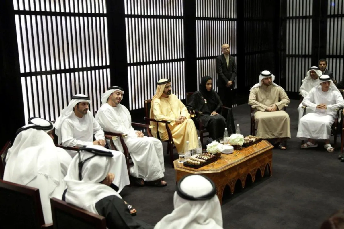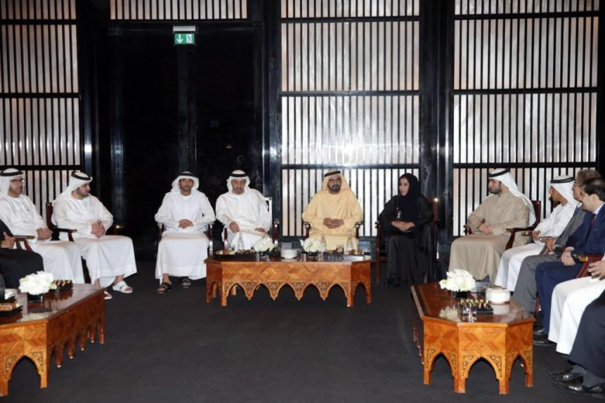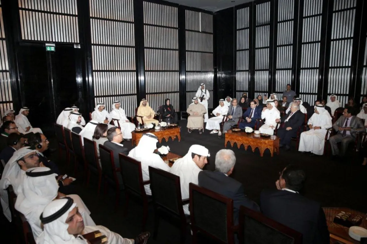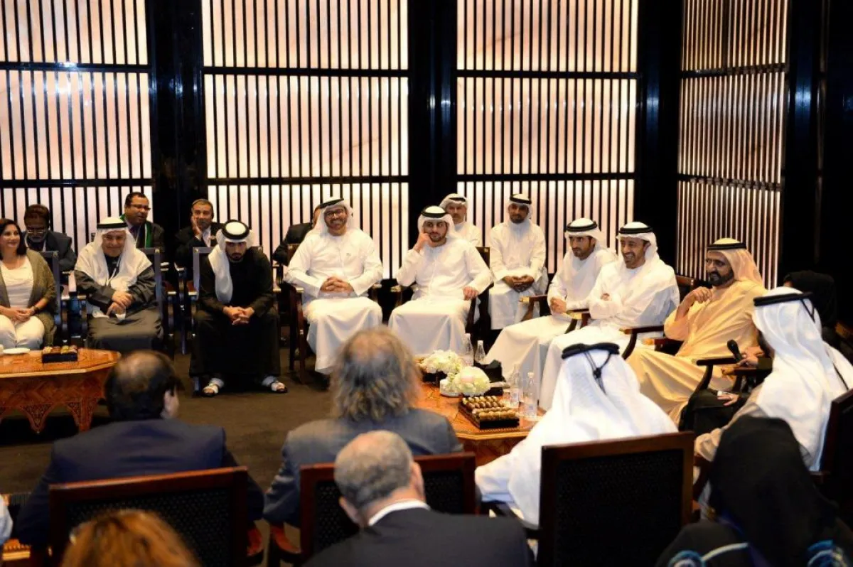 حضر اللقاء الشيخ حمدان بن محمد بن راشد آل مكتوم، ولي عهد دبي، والشيخ مكتوم بن محمد بن راشد آل مكتوم، نائب حاكم دبي، والشيخ عبد الله بن زايد آل نهيان، وزير الخارجية رئيس المجلس الوطني للإعلام، وم محمد عبد الله القرقاوي، وزير شؤون مجلس الوزراء، والشيخ ماجد بن محمد بن راشد آل مكتوم، رئيس هيئة الثقافة والفنون بدبي. كما حضر اللقاء الفريق مصبّح راشد الفتّان، مدير مكتب نائب رئيس الدولة رئيس مجلس الوزراء حاكم دبي، ومنى غانم المري، المدير العام للمكتب الإعلامي لحكومة دبي، وعدد من الشيوخ وكبار المسؤولين.