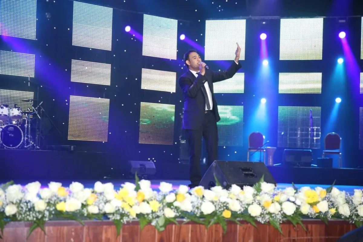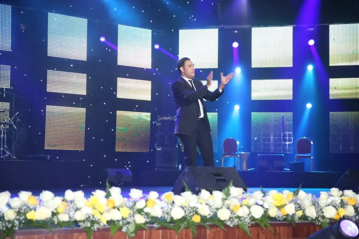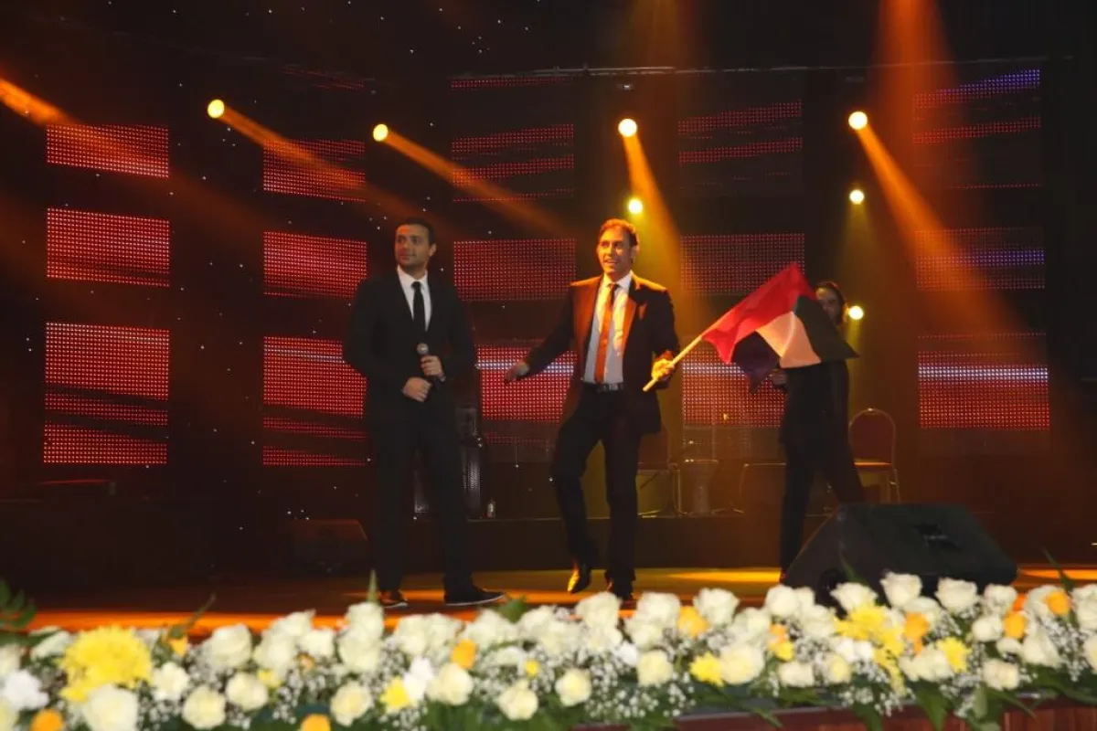 بعدها ظهر رامي صبري على المسرح، واستقبله الجمهور استقبالاً كبيراً فقال: "جايين باسم مصر للشعب الأصيل وبعدها أطلّ مدحت صالح قائلاً: الله يرحم شيخنا زايد جايين نفرح معكم، ونرد جزء من الجميل ثم ظهر عمرو مصطفى على المسرح، وهو يحمل علم الإمارات في يده ويقول: "أغلى شيء عندي بلدي واللي يشليها في عينه بياخد حته مني"، وقدموا الأوبريت وسط حماس الجمهور وهم يرفعون الأعلام ويهللون ويصفقون.