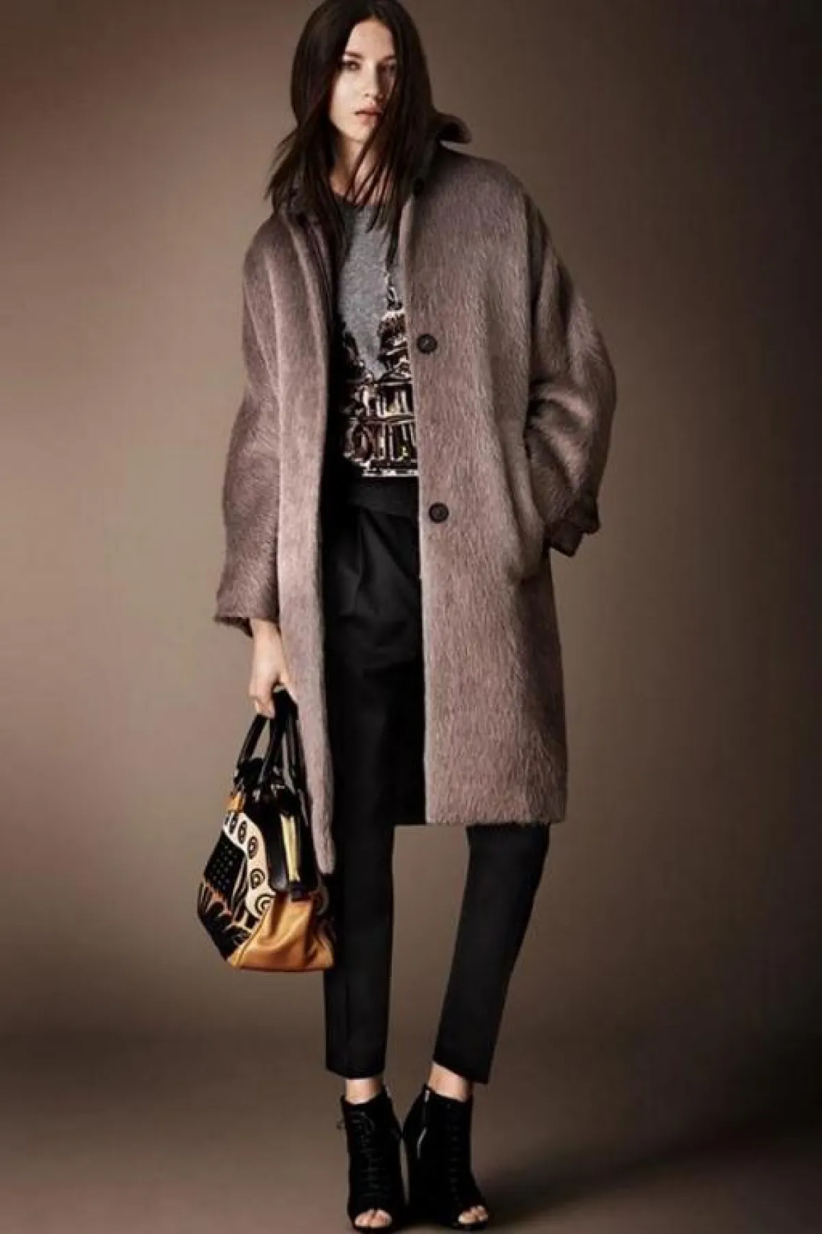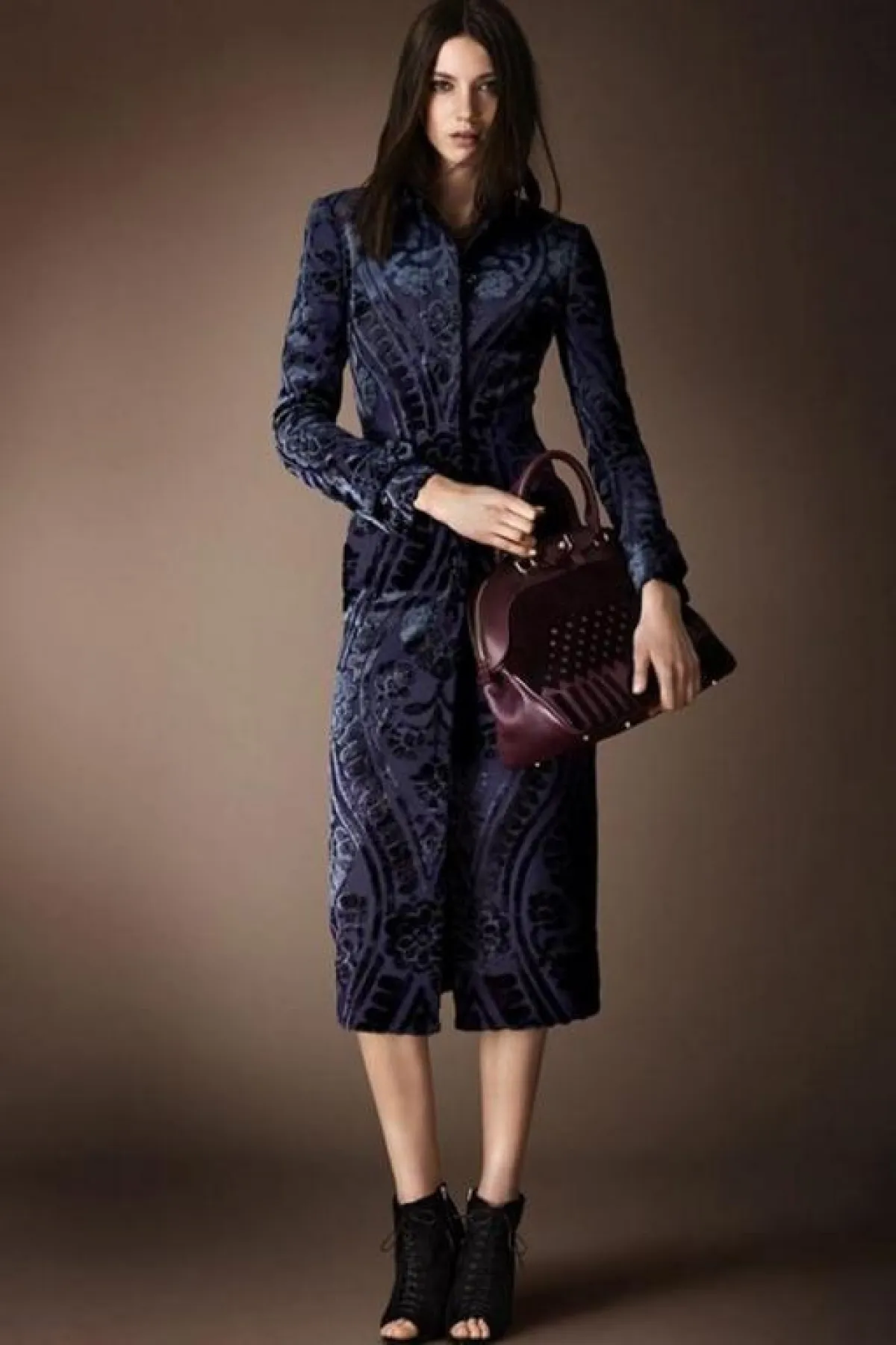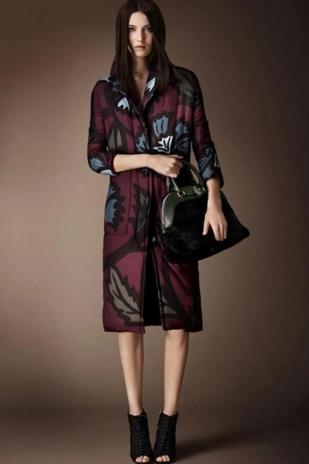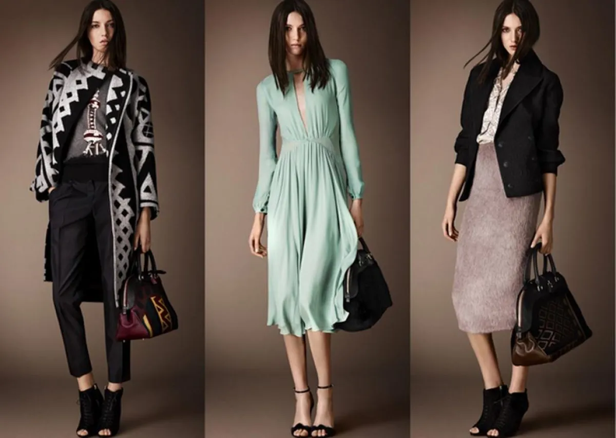 وإليك بعضاً ممّا قدمته Burberry Prorsum لامرأة عام 2014، حيث ستلاحظين التركيز على الحقائب ذات الحجم المتوسط والأحذية الداكنة المرتفعة الساق (بوت)، مع كثير من الأحذية المفتوحة ذات الكعوب العالية.