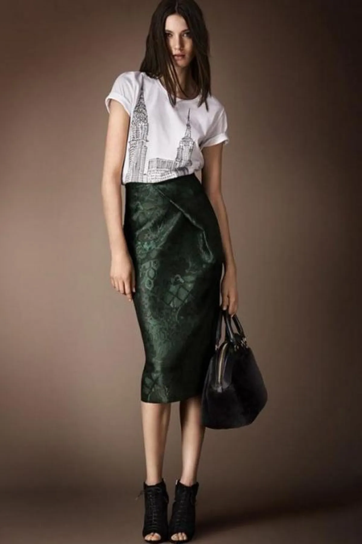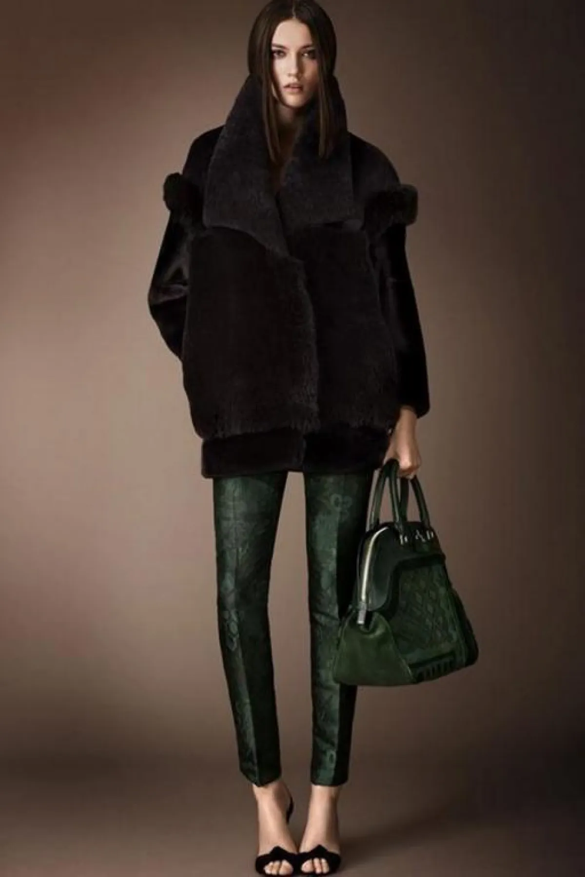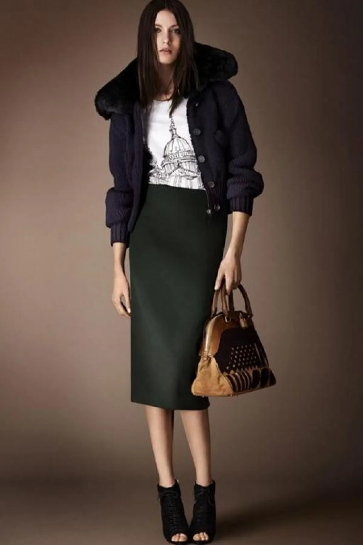 وإليك بعضاً ممّا قدمته Burberry Prorsum لامرأة عام 2014، حيث ستلاحظين التركيز على الحقائب ذات الحجم المتوسط والأحذية الداكنة المرتفعة الساق (بوت)، مع كثير من الأحذية المفتوحة ذات الكعوب العالية.
