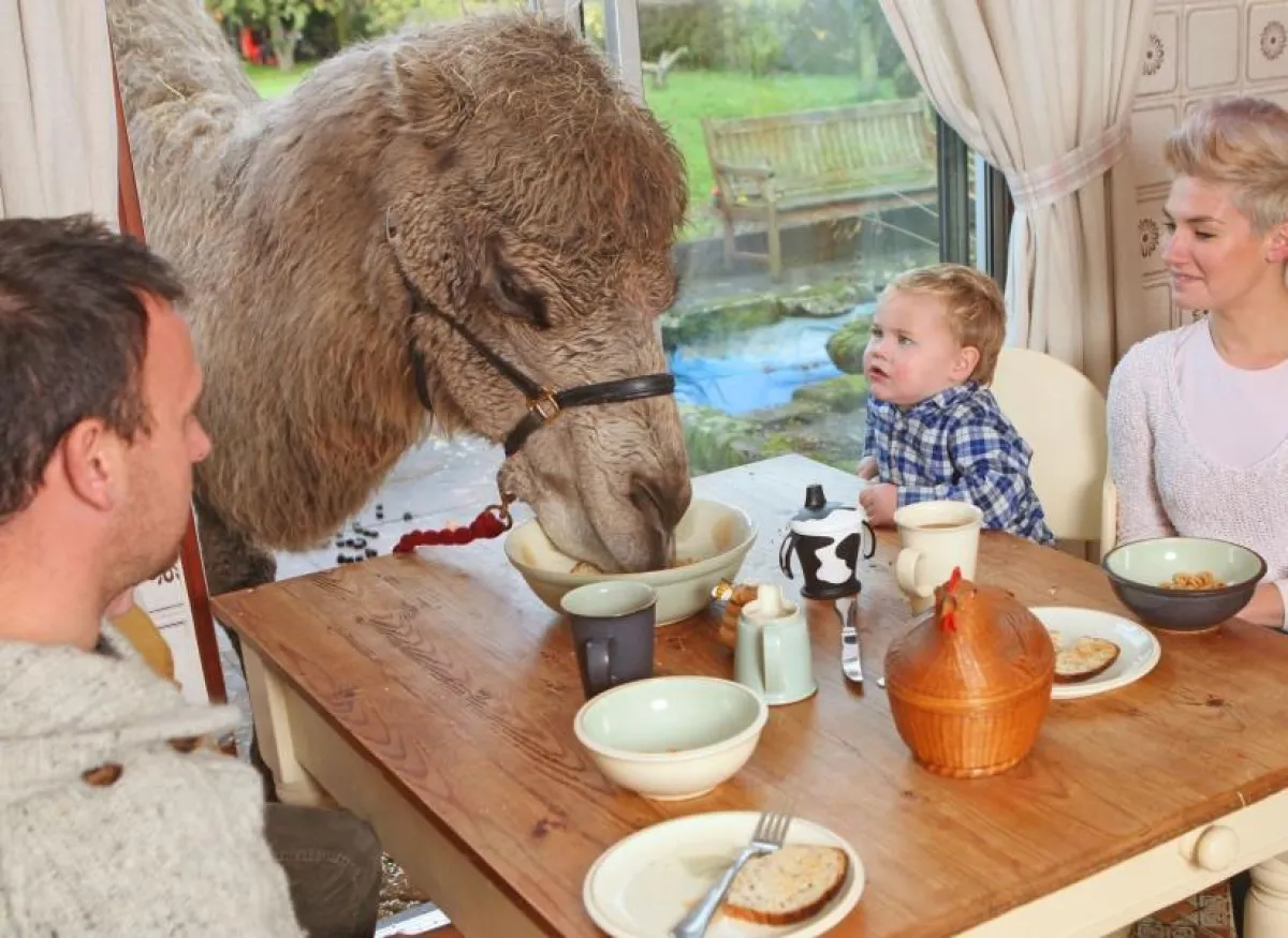 حب البعض للحيوانات الأليفة لا يمكن إخفاؤه، وهذا ما يظهر جليًّا على عائلة بريطانية قررت أن تستضيف جملًا يبلغ من العمر ست سنوات في منزلها، وتحرص على أن يتناول وجبة الإفطار معها يوميًّا وعلى مائدة واحدة!