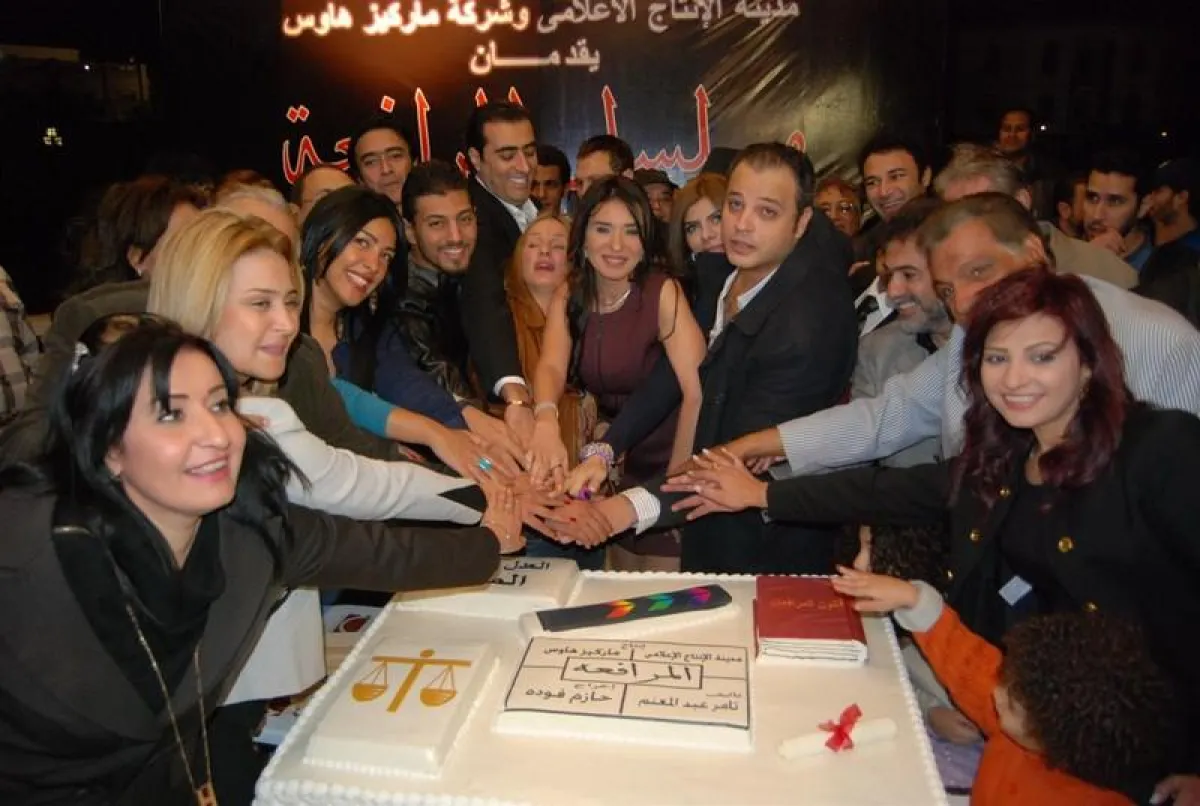 شارك كلّ أبطال العمل في تقطيع التورتة، ثمّ انتهى الاحتفال، وبدأت المجاميع بالحضور، حيث تمّ البدء بتصوير مشهد العزاء.