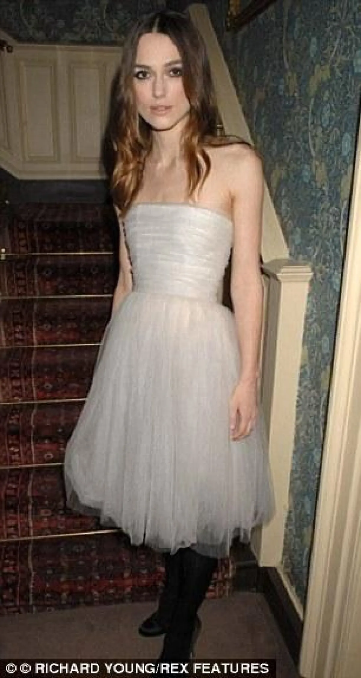 تكمن المفاجأة بأن النجمة قد ظهرت بفستانها هذا في حفل أقيم عام 2008، ولكن يبدو أن هذا الفستان طابق ذوق Keria Knightley، إذ ظهرت به للمرة الثالثة في حفل خيري أقيم البارحة، وفي هذه الإطلالة أضافت النجمة أكماماً طويلة لفستانها الأنيق، وأكملت اللوك بحذاء ذهبي جميل.