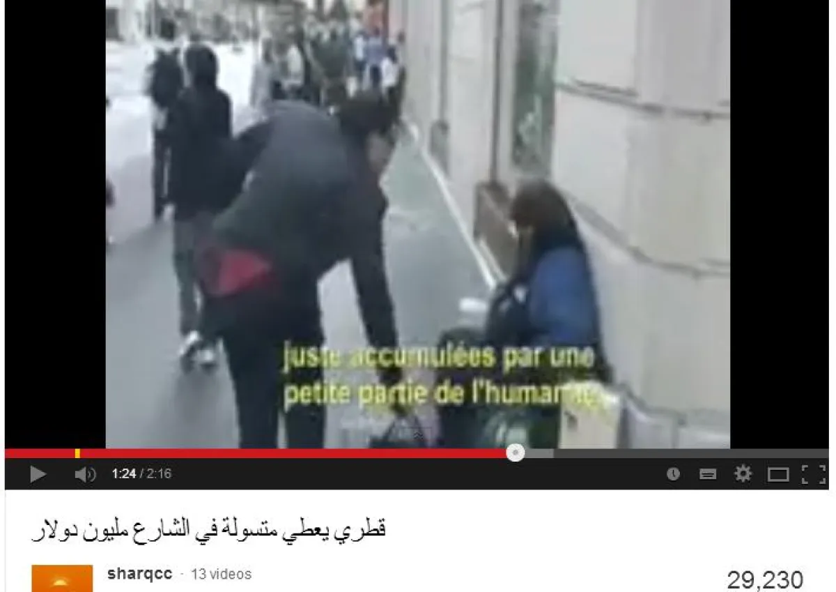 مقطع فيديو من نوع غريب قامت عدة صحف سعودية بنشره مؤخراً واستقبال التعليقات عليه، حيث يظهر شخصاً يدّعي أنه ملياردير قطري من أسرة عريقة وغنية تعتبر من أقوى الأسر في الشرق الأوسط، ولديهم العديد من الأموال والاستثمارات حول العالم، خاصة في باريس التي يصور هذا المقطع منها. ويتحدث صاحب الفيديو في المقطع بلغة إنجليزية بالغة الضعف والرداءة، وقد تمت ترجمة المقطع والتعليق عليه باللغة الفرنسية، وذكر فيه أن اسمه عبد الوسيم الواني، وأنه سيقوم بإعطاء محفظة نقود تحتوي على مليون دولار تقريباً لإحدى المتسولات في شوارع باريس، فهذا المبلغ لا يعني له شيئاً على الإطلاق، وأنه يحصل على هذه الملايين يومياً، وهو يريد إسعاد شخص محتاج وغير معروف، وقام خلال المقطع بوضع نقود من فئة اليورو في حقيبة، ثم قام بإلقائها أمام متشردة تجلس على إحدى الأرصفة وانصرف.